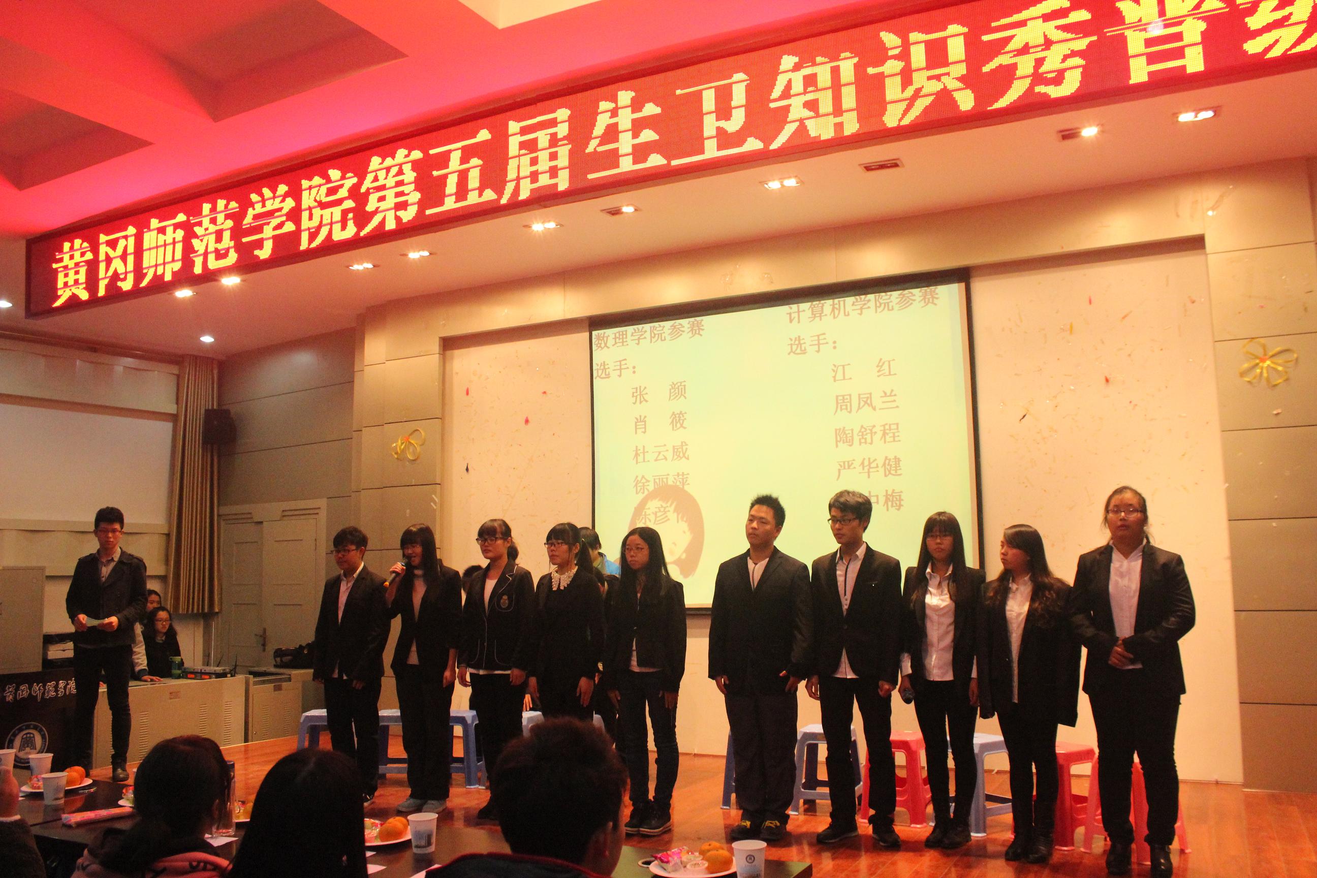 比赛由数理学院带来的相声以及计算机学院带来的歌曲《天后》拉开帷幕。选择题环节,双方选手精神抖擞,充满斗志,在场上针锋相对。中间穿插的游戏《抢板凳》使现场气氛更加热烈。简答题环节选手们充分展示了他们丰富的生活常识,抢答题环节伴随着游戏《保卫蜡烛比赛》,将现场气氛推向高潮,同学们在欢乐中学会了生活常识。最后,计算机学院以2分的优势赢得了此次比赛,顺利晋级四强。