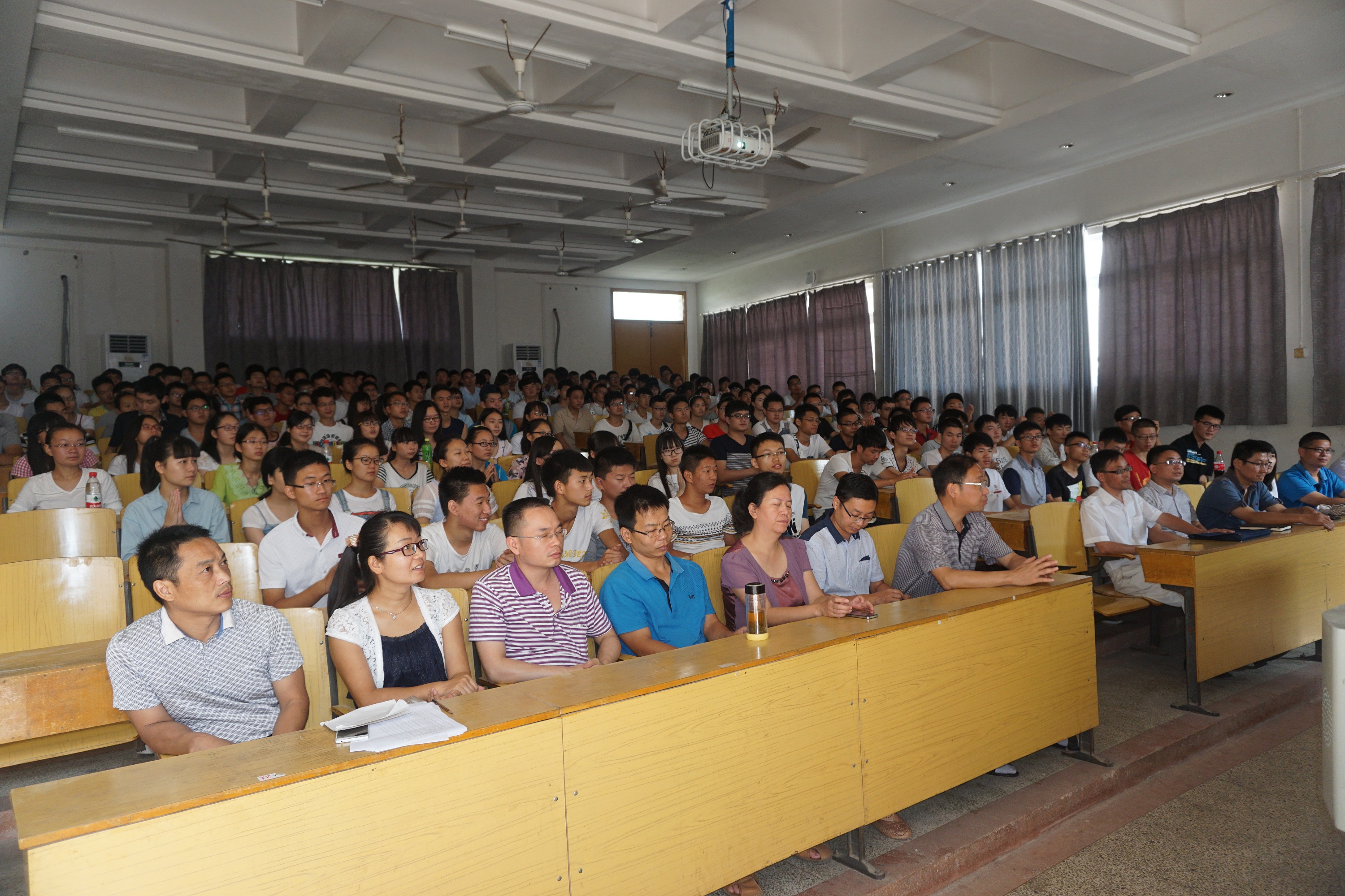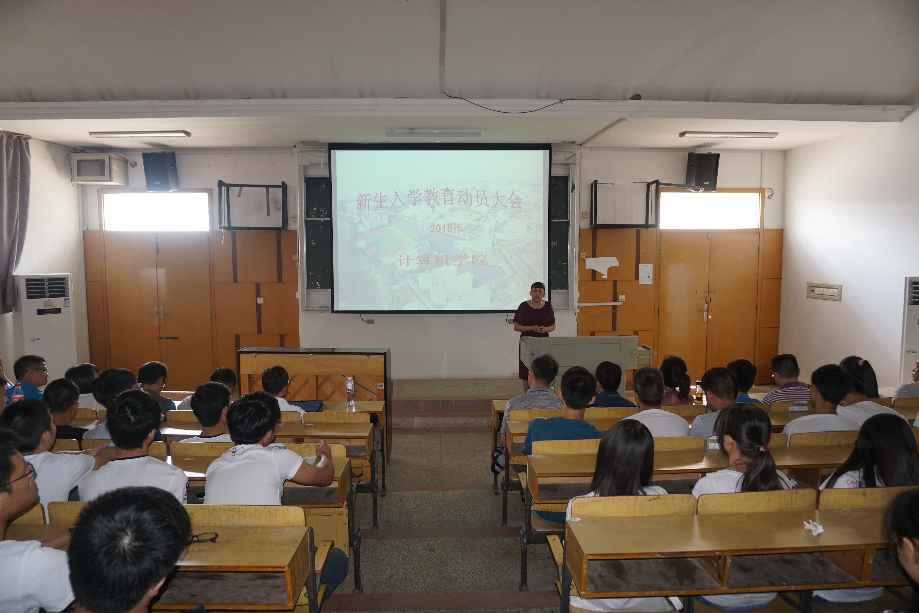 9月9日,我院在南区主教学楼B04召开了2015级新生入学教育动员大会,拉开了为期三天的新生入学教育活动的序幕。学院党总支书记何中林和院长张青同志在会上对新生分别进行了如何适应大学生活的教育、思德理想教育和专业学位意识教育。大会邀请了科技处副副处长、计算机学院教授胡志华博士,学院领导班子全体成员,全院博士教育,辅导员,新生班主任以及二百多名新生参加了会议。会议由陈劲松老师主持。