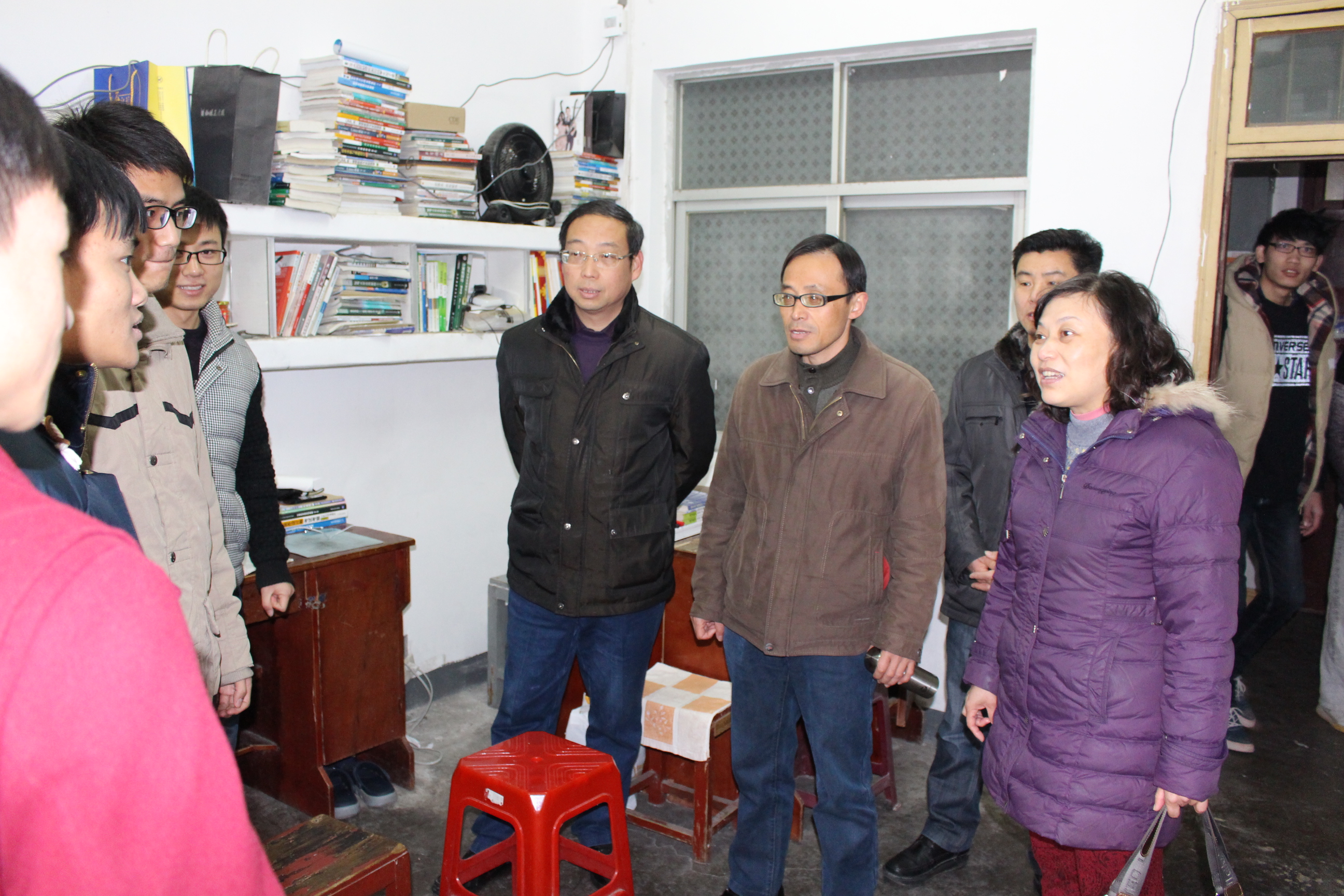2015年12月22日上午,计算机学院院长张青教授、党总支书记何中林教授、副院长刘华教授以及全体学生工作人员一道深入学生寝室看望学院考研学子。