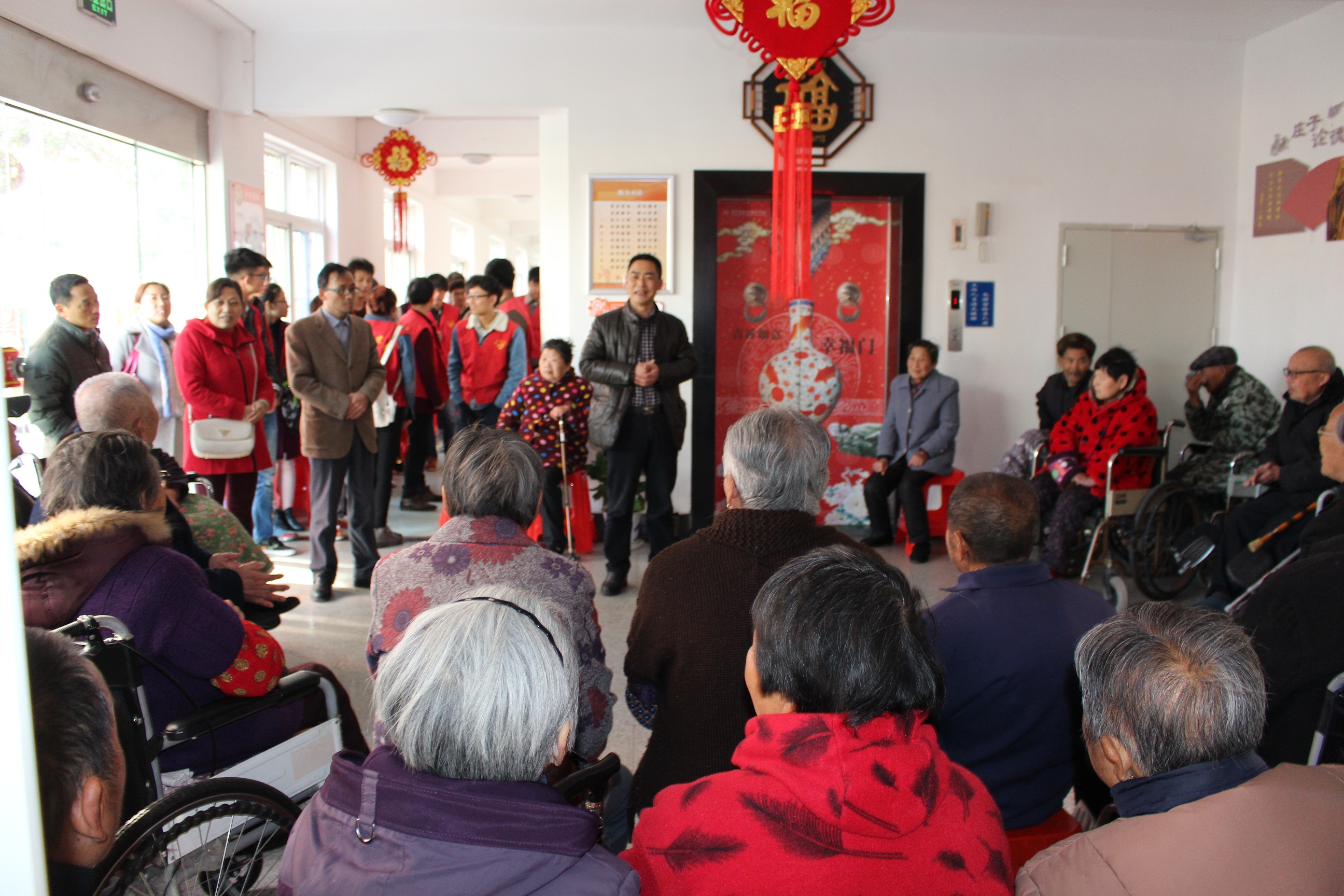 在福利院办公室主任郭强的带领下,师生们参观了福利院的布局结构,了解了老人的生活状况。志愿者们都非常礼貌,见到老人就亲切的喊爷爷、奶奶,帮老人们整理内务(打扫卫生、修剪指甲、按摩等),老人们看到朝气蓬勃的志愿者们,情不自禁的跟她们聊天,给志愿者们述说心事,拍照。随后,志愿者们在老人们的热烈掌声中献上大家精心准备的魔术、舞蹈、二胡、黄梅戏、合唱革命歌曲等文艺节目,院长张青的一首“映山红”及福利院张奶奶演唱的京剧获得了老人们热烈掌声。在表演节目同时,学院领导及志愿者们为老人们分发了带来的面包、蛋糕等。看到老人们脸上满足的表情,每位志愿者脸上都洋溢着喜悦的心情。