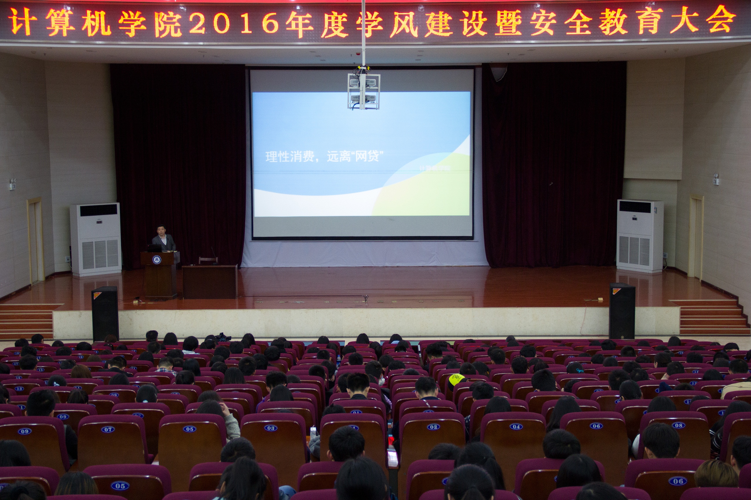“理性消费,远离网贷”,4月6日晚19:00,williamhill英国学术报告厅,计算机学院召开2016年度学风建设暨安全教育大会。计算机学院分管学生工作老师及全体学生全体参与本次大会,大会由计算机学院辅导员胡志锋老师主持。