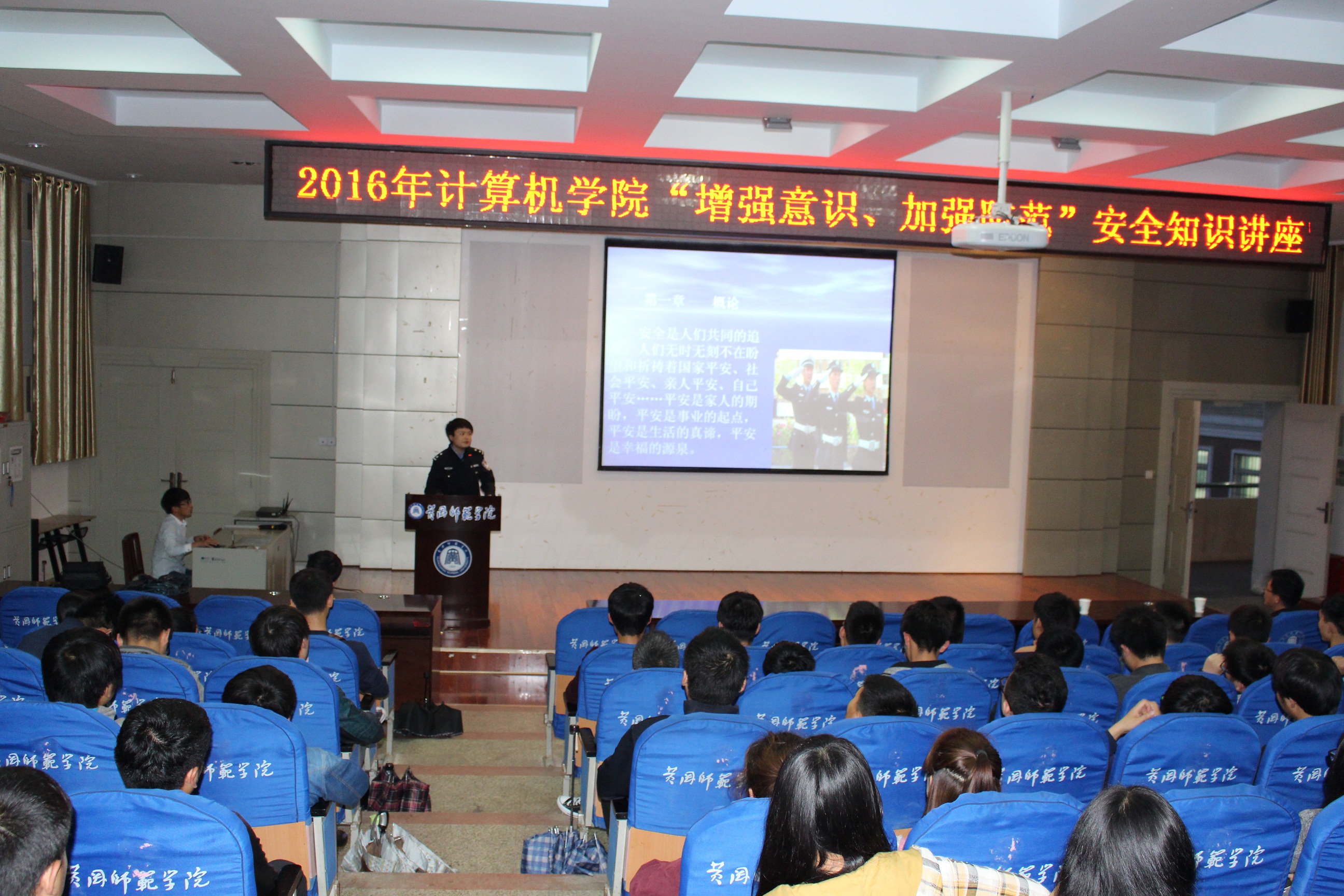 “增强安全意识,加强安全防范”。4月26日晚,计算机学院开展安全教育月活动,特邀请黄冈市公安局开发区分局邵婧警官为学院新生做“增强意识,加强防范”安全知识讲座。计算机学院党总支书记何中林教授,院长张青教授等领导和学工老师参加,讲座由陈劲松同志主持。