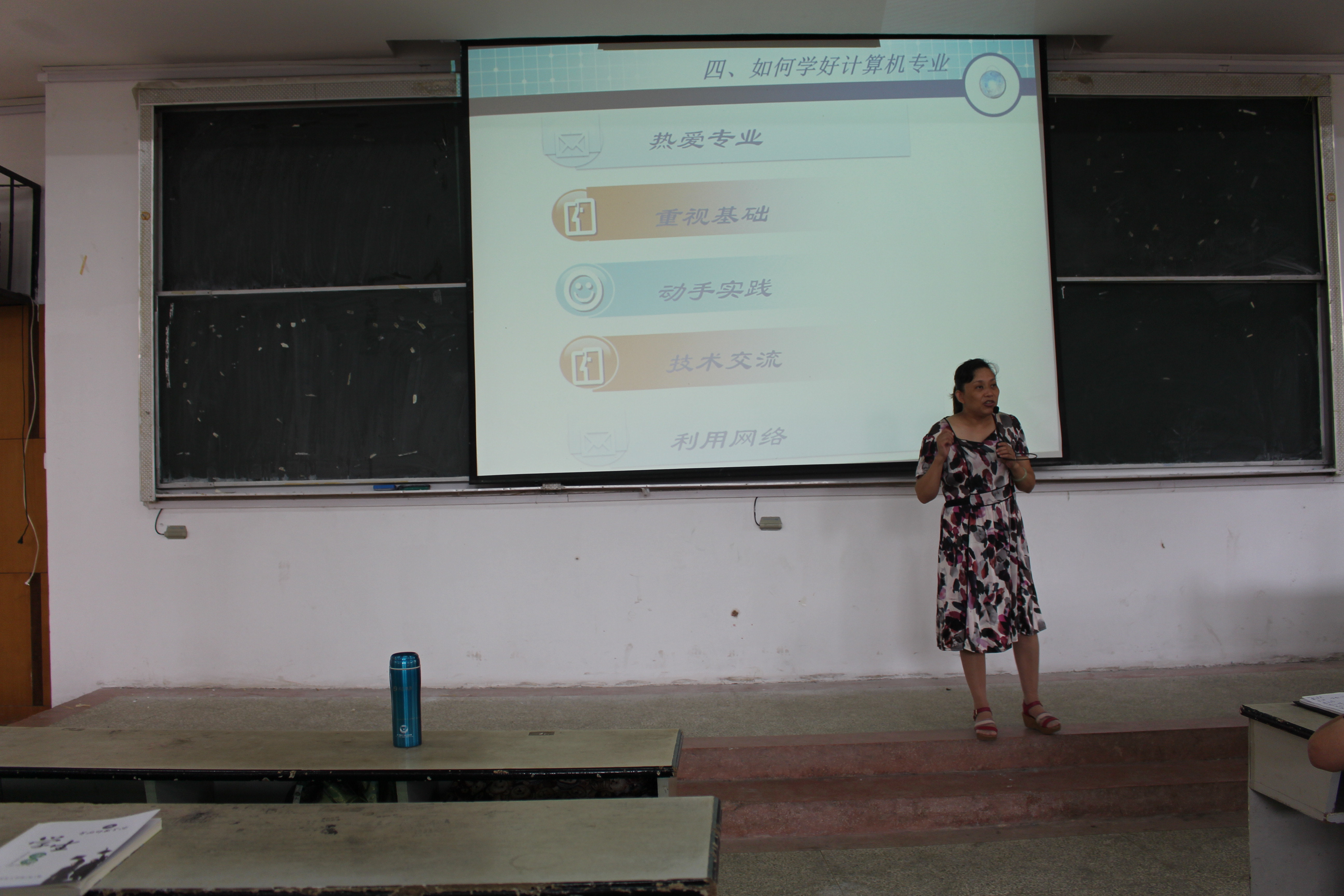 院长张青教授代表学院致辞,她代表学院对2016级新同学的到来表示热烈的欢迎。随后院长张青教授用饱满的热情、激扬的文字为2016级新生做了一场生动的专业教育讲座。讲座中张青院长首先介绍了计算机学院的历史、现状、优势、特色和学院精神。其次为大家着重介绍了各专业的专业课程及如何学好计算机专业。张青院长结合自己的求学、科研之路,向同学们分享了自己的人生感悟,鼓励同学们走进实验室,走向实践。最后张青院长对2016级新生提出了几点期望:一、快速适应环境,融入学校;二、珍惜时光,吸取知识营养;三、勇于实践创新,培养综合素质;四、在老师和同学们的共同努力下度过一个美好而丰富的大学生活。