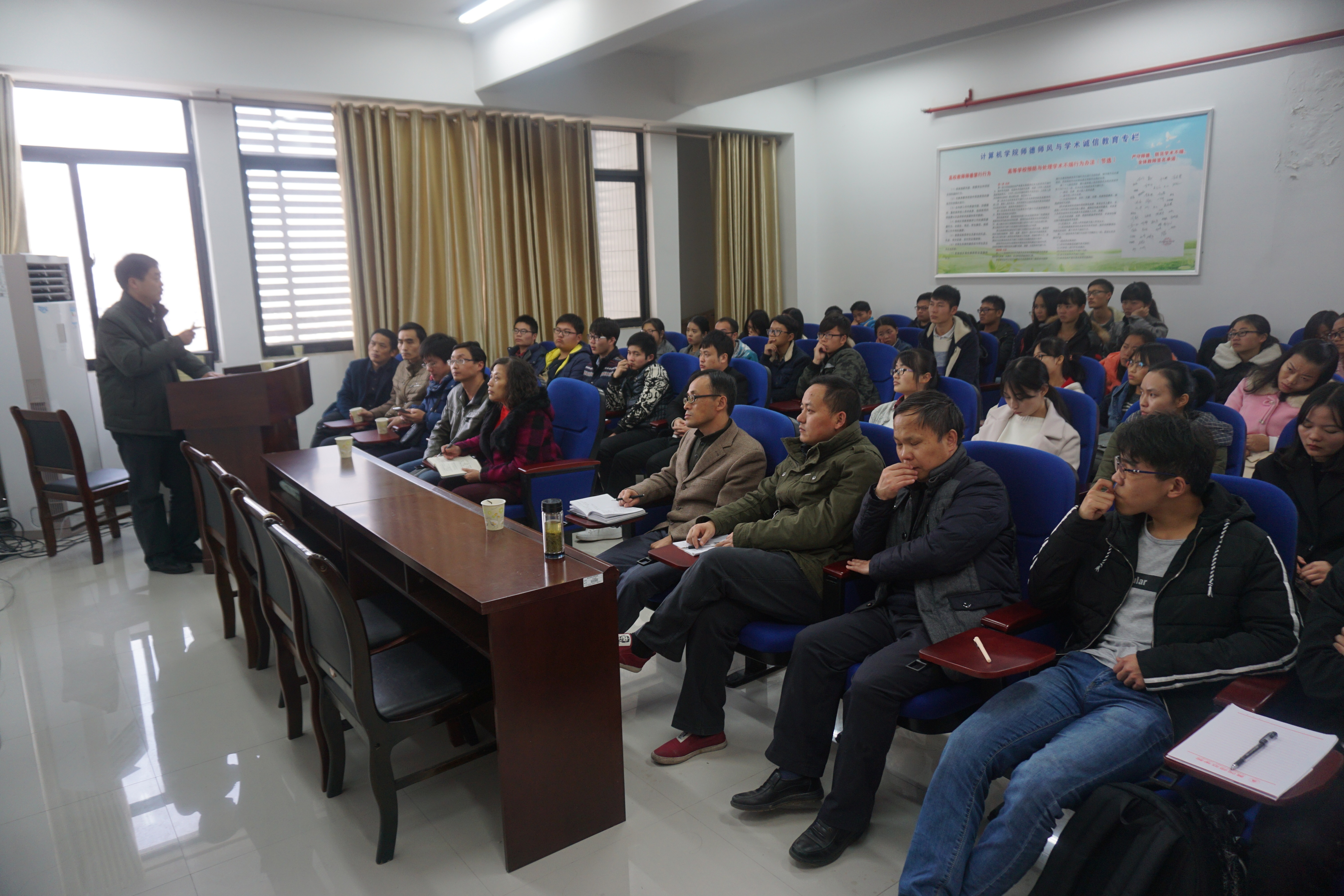 2016年12月7日下午3:00,华中科技大学计算机学院副院长秦磊华教授应邀到我院进行题为“面向系统,强化实践的计算机类专业人才培养模式探索与实践”的学术报告。学术报告会由计算机学院院长张青教授主持,何中林书记等二十余位老师和部分学生参加。