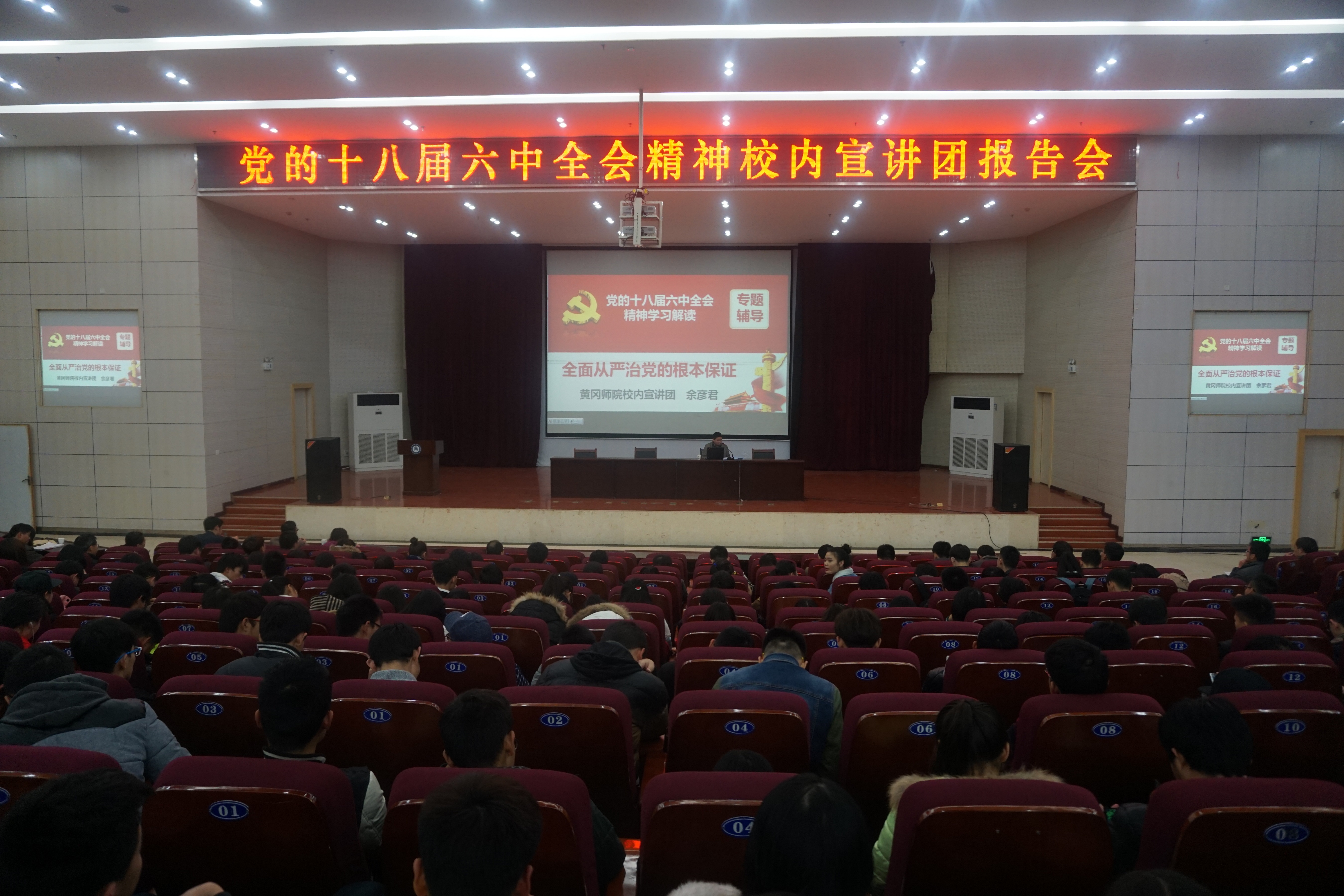 余彦君同志从“十八届六中全会的重大意义”、“全面把握《准则》的新思想与新要求”、“科学把握《条例》的新思想与新要求”、“准确把握突出抓好领导干部特别是高级领导干部这个关键少数”四个方面,用了大量案例,结合学校和我们身边的实际,对十八届六中全会精神进行了认真解读。余书记表示,要牢固树立政治意识、大局意识、核心意识、看齐意识,坚定不移维护党中央权威和党中央集中统一领导,继续推进全面从严治党,共同营造风清气正的政治生态,确保党团结带领人民不断开创中国特色社会主义事业新局面。