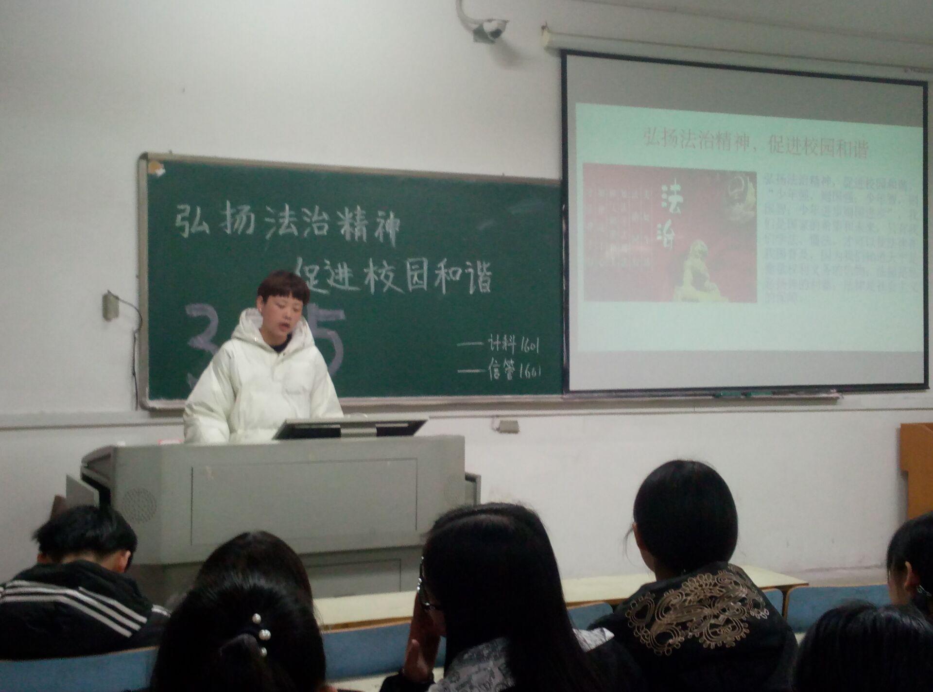 为进一步加强我校学生权益维护观念,促进学生自我维权, 3月15日,计算机学院以班级为单位,开展了以“弘扬法治精神,维护校园和谐”为主题的3.15系列活动。