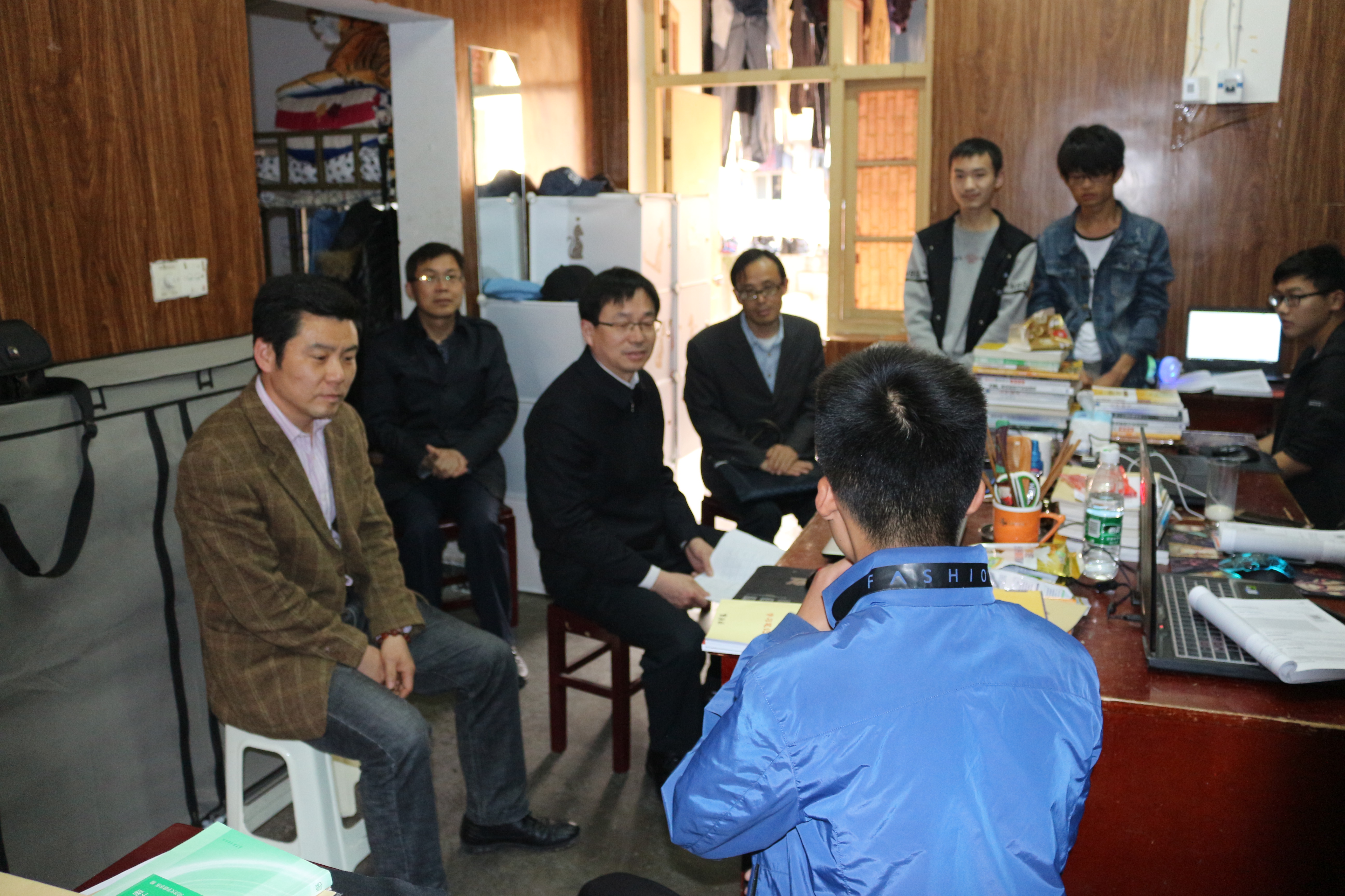按照学校2017年持续深入开展党员干部联系服务学生“五个一”活动安排,4月13日晚上6:00,校党委常委王锋同志在计算机学院党总支书记何中林以及学生党支部陈劲松、辅导员陶筱平、胡志锋等老师的陪同下深入南区12栋学生寝室614室,看望软件工程201601班学生。