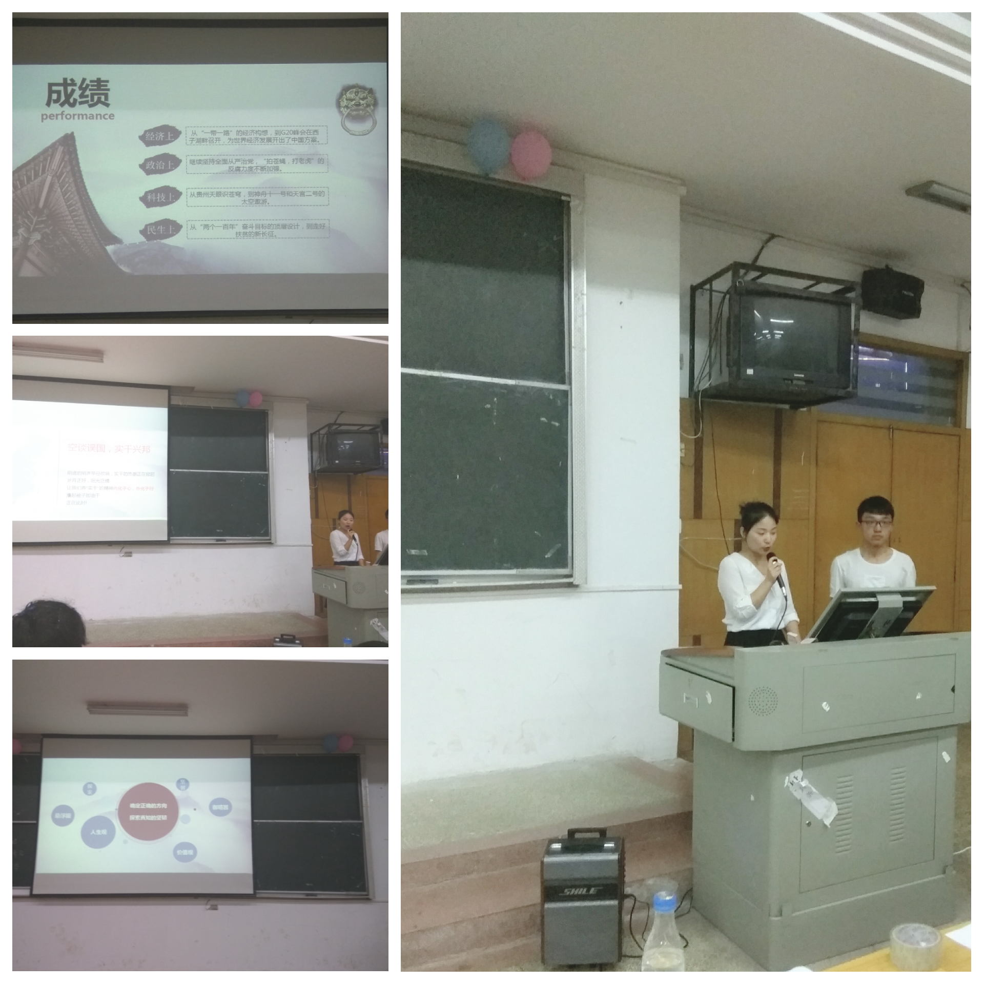 本次比赛以“一学一做,撸起袖子加油干,迎接党的十九大胜利召开”为主题,参赛选手们大多通过PPT辅助的方式进行演讲,从而形式与内容都更为丰富生动;有的选手将自己的真实经历加入到演讲当中,使演讲内容更贴切我们日常生活,更接地气;还有的选手为同学们播放有趣的小视频,提高了大家的听讲兴趣。选手们演讲过程中,评委们也逐一对他们进行了评价,对他们有感情的演讲以及演讲内容及形式进行了表扬,但同时也指出了他们演讲紧张、对稿件不熟练、台风不太稳健等问题。