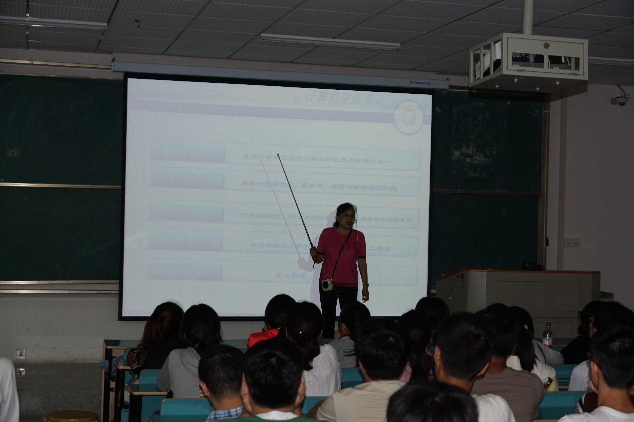 张院长首先介绍了计算机学院基本情况,介绍了我院的各个专业,简述了优秀师资队伍、良好教学资源以及先进设备支持。接着院长又提到了与我院相关的一系列学术活动,激励同学们多参与、多见识,同时对于院里开展的校园文化生活和社团活动也予以支持与鼓励,希望同学们塑造积极向上的人格,拥有多元化的大学体验。