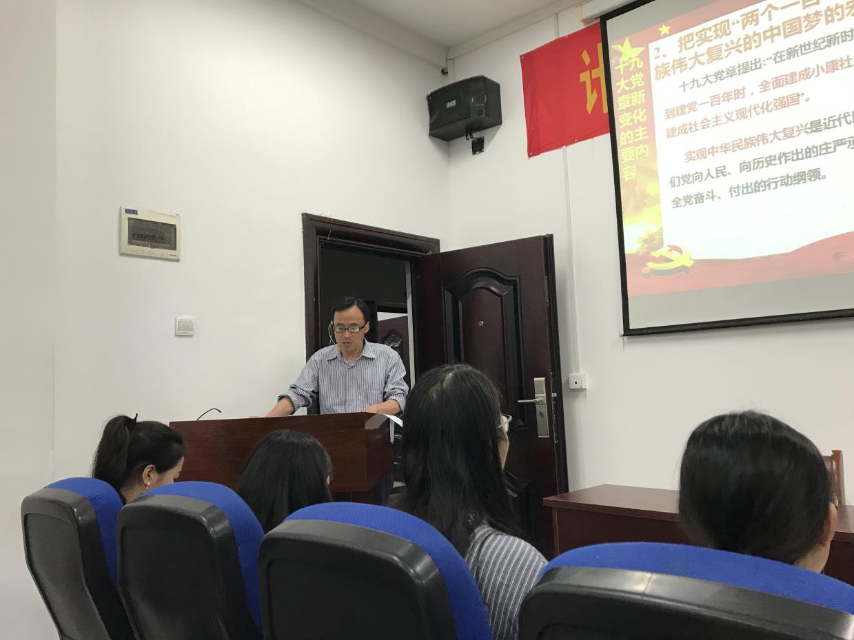 为认真学习贯彻落实党的十九大会议精神,贯彻学校党委关于总支书记讲党课的要求,5月4日晚,计算机学院党总支书记何中林为100余名学生党员和入党积极分子讲授了题为《浅论十九大党章的修改内容及特点》的讲座。
