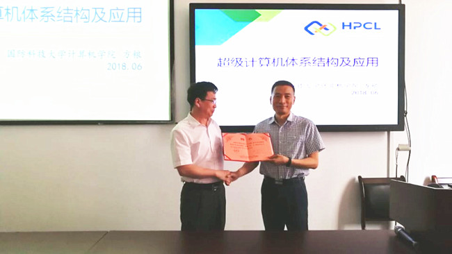 本网讯(通讯员 姜国松 ) 6月14日下午,应计算机学院邀请,国防科技大学方粮教授为该院师生作《超级计算机体系结构及应用》主题报告。校党委常委王锋出席报告并为方粮教授颁发客座教授聘书。