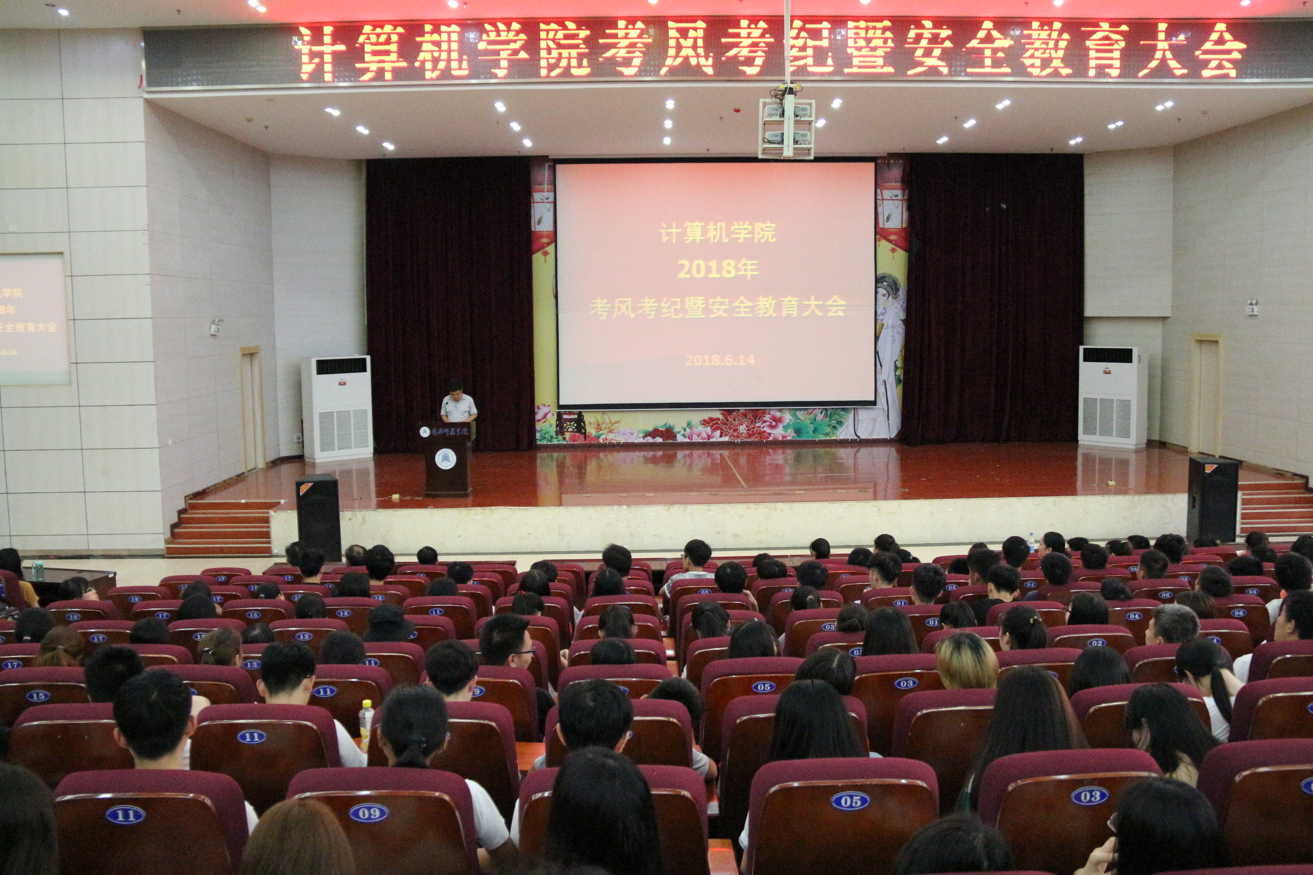 6月14日晚,计算机学院举行期末考试考风考纪教育大会。大会由计算机学院学生党支部书记陈劲松老师主持开展,计算机学院全体在校生参加本次大会。