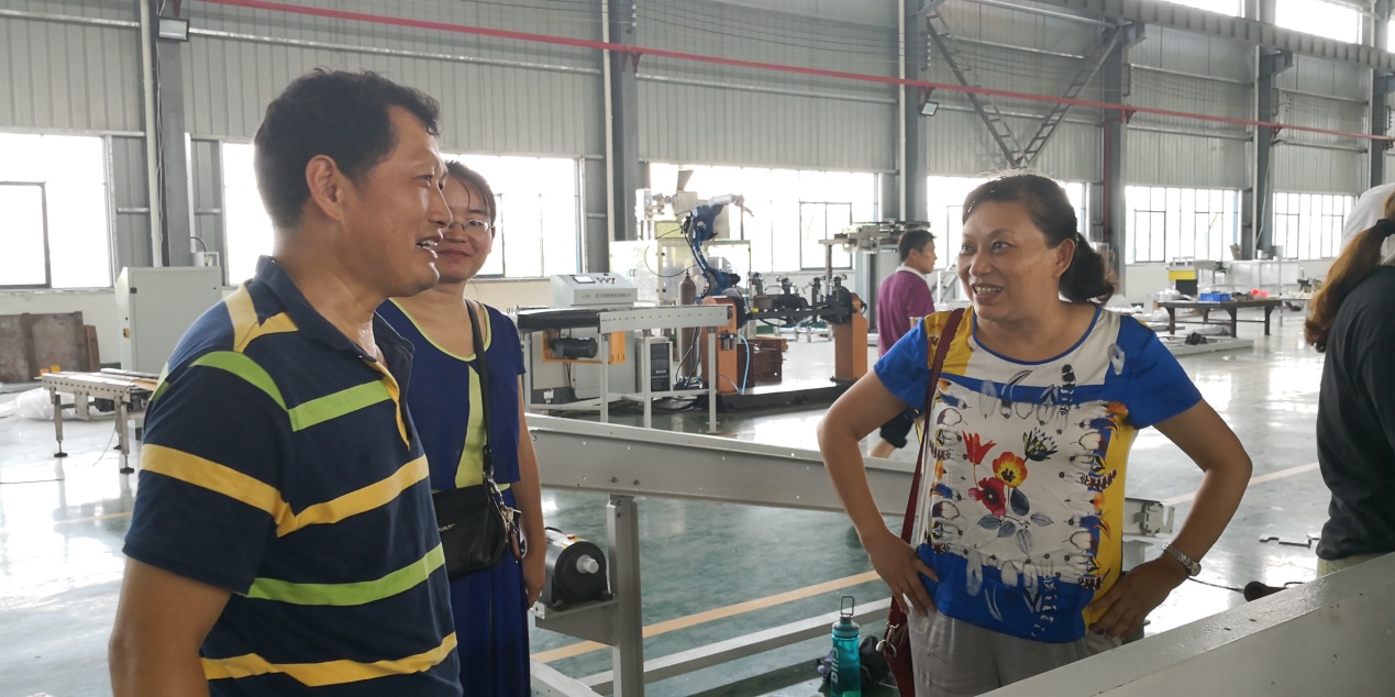 张青与企业指导老师进行了亲切交谈,并向他们对学生的热心指导表示感谢。湖北和越机器人技术有限公司总经理方磊介绍,同学们学习态度端正,能克服工作区域高温、交通不便等多重困难,认真学习,体现了计算机学院积极向上、求知好学的学风。
