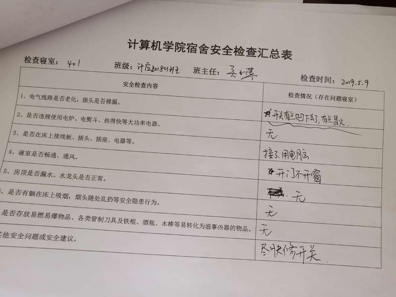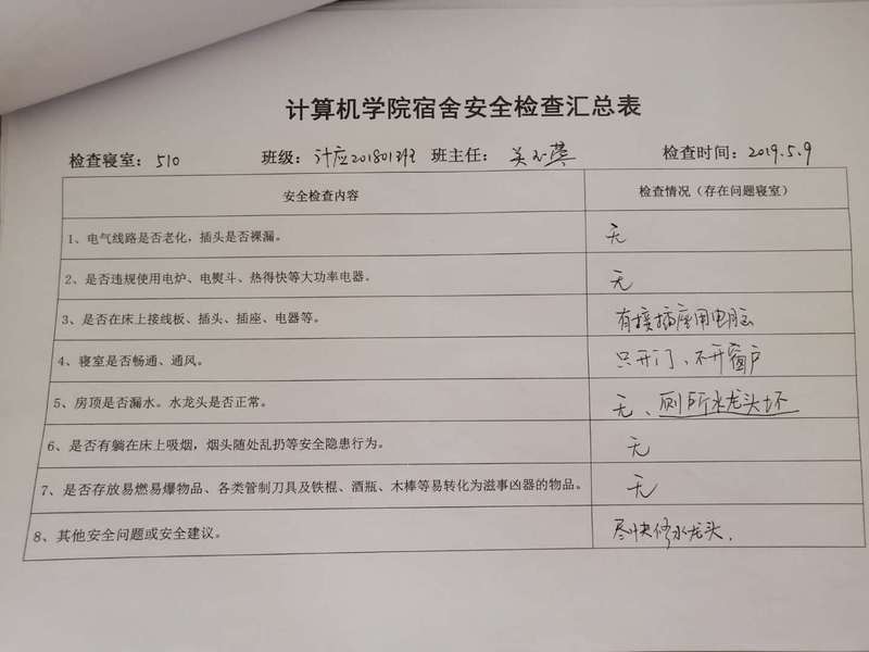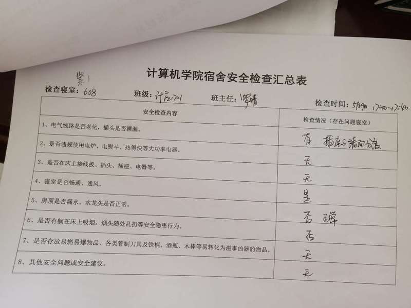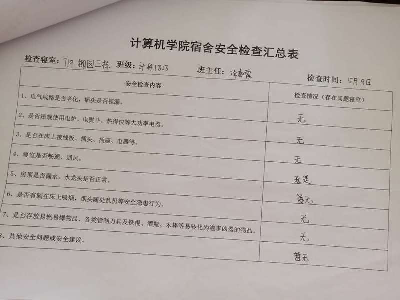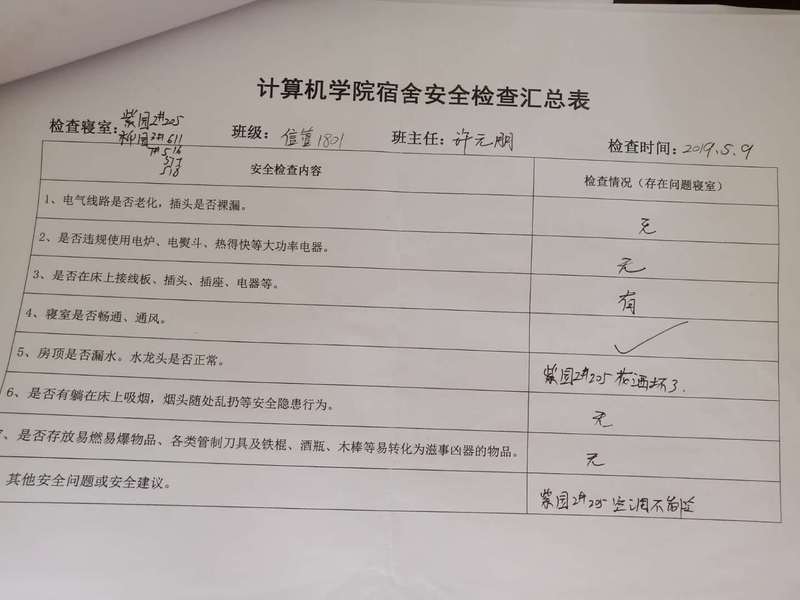 计算机学院学生会安全部查寝工作报告及照片