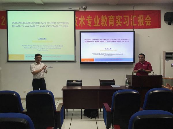美国天普大学计算机与信息科学系的教授应计算机学院的邀请,于2019年6月5日晚上,在计算机学院308学术报告厅室作了“Design erasure-coded data centers towards reliability, availability, and serviceability (RAS)”的学术报告。报告会由计算机学院院长胡志华教授主持,计算机学院科研骨干、科研读书班全体成员参加了报告会。