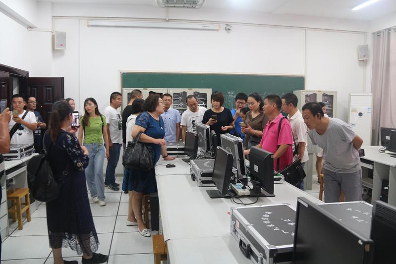 会后,工会主席余志超带领新生家长参观计算机学院实验室。
