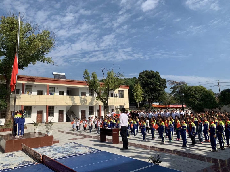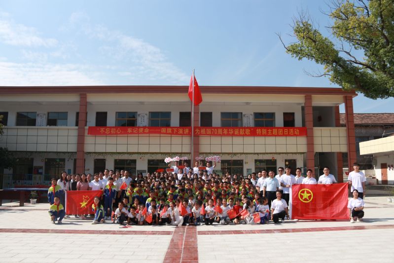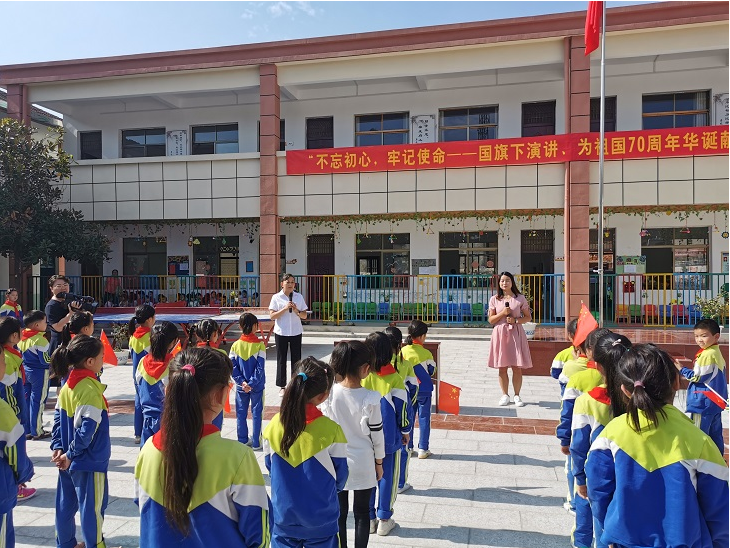 为深入贯彻落实习总书记“不忘初心,牢记使命”主题教育会议精神,庆祝中华人民共和国成立70周年,唱响青春的主旋律,激励和引导广大青少年更加紧密地团结以习近平同志为核心的党中央周围,携手吹响“青春心向党,建功新时代”的前进号角,9月27日,williamhill英国计算机学院团委在学院党总支带领下赴学校实践育人教育基地——武穴市四望镇启元小学,开展“不忘初心、牢记使命——国旗下演讲、为祖国70周年华诞献歌”特别团日活动。计算机学院党总支书记张青教授、院长胡志华教授、正处级组织员杜建东教授、副院长刘华教授、副院长姜国松教授、党总支副书记陈琛老师、工会主席余志超教授、四望镇团委洪科书记、四望镇中心小学魏茂正校长、启元小学宋焕玲校长、计算机学院党员代表、团员代表、启元小学全体师生出席本次活动,活动由计算机学院团委书记胡志锋老师主持。