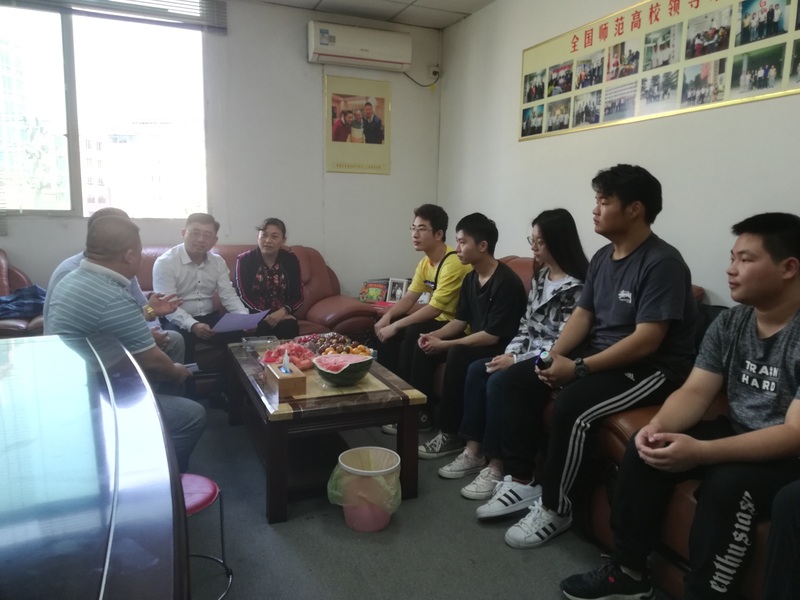 广畅教育公司负责人褚继红介绍了计算机学院学生的实习情况和广东地区对计算机师范生的需求,与学院领导共同探讨了如何进一步推进实习基地建设。胡志华院长与实习生一一交谈,详细了解了同学们的实习情况,鼓励同学们在实习中好好学习,当一名优秀的信息技术教师。