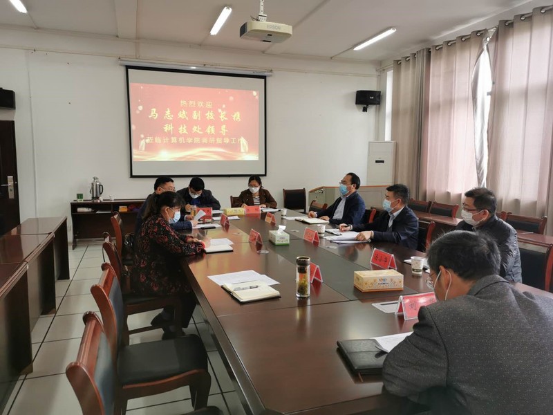 4月22日下午,副校长马志斌到计算机学院调研指导新学期科研工作,重点是科研进展情况。科技处副处长吴光辉,项目科科长汤小华陪同调研。调研会由计算机学院党总支书记张青教授主持,学院领导班子成员参加了座谈。