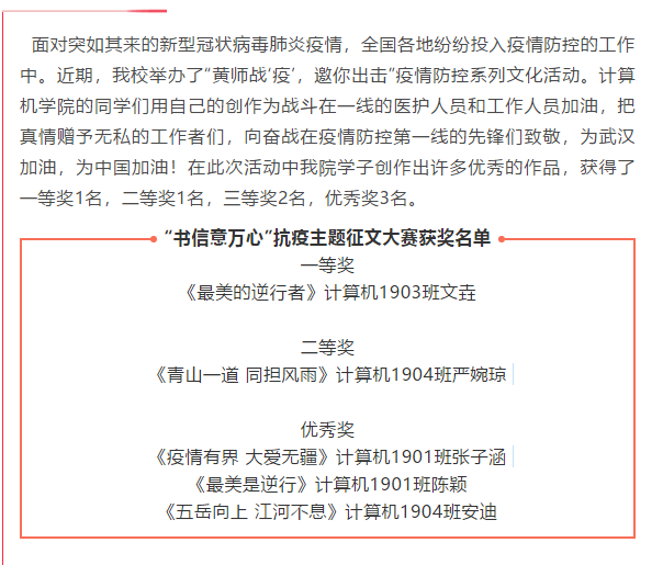 用故事传递“疫情美”活动计算机学院获奖名单