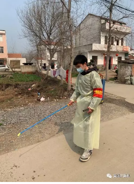 沈聪同学是我院计算机科学与技术1903班的一名学生,他自2020年1月28日起积极响应当地村委会发出的疫情防控青年志愿者的号召,主动报名参与到疫情防控的志愿服务工作当中去。他负责巡视驱散人员聚集,给村民测量体温,在主干道进行消毒工作。长时间的工作后,他的手套和口罩里全是汗水。但他还是耐心地做好服务,为村民们做好检查。