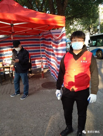我院软工1601班的徐建杰同学在本次寒假期间,也自愿报名参加了社区里组织的防疫活动。2020221日开始,他在上海市沪东新区新沪东公寓做志愿工作。在此次疫情防控志愿服务工作中,他坚持按时到社区门口为居民测量体温,对进出车辆人员逐一进行仔细询问并进行相关信息登记,对不符合通行条件人员及车辆进行劝返并耐心说明原因;同时还进行相关疫情防控知识的宣传工作,在喇叭里播放疫情防控知识,分发防疫知识手册,让居民们对新型冠状病毒的防控知识有深刻了解。