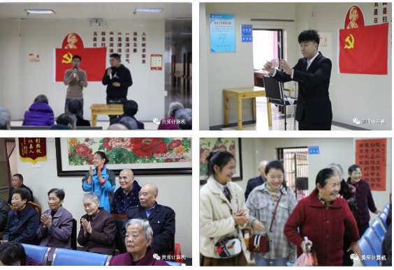 龙王山老年公寓的喻院长热情的接待了我院师生,并组织老党员与我院教师、学生党员开展了一次特殊的主题党日,老中青三代党员齐聚一堂重温入党誓词。会上,学院党总支书记张青同志、院长胡志华同志分别向老人们介绍了计算机学院党建工作、专业特色、学生培养等情况。“庆祝中华人名共和国成立70周年”纪念章的获得者,黄冈实验中学退休老教师90岁王翠英老党员,用切身经历给我们讲述了她与党的故事。作为教育工作者,她殷切期望学院能多培养一些“一专多能”的新时代社会主义接班人。在感动之余,学院学生党员代表刘楷轩带头表示要继承王翠英老人艰苦奋斗的优良作风,努力学习,积极进取,争取为党的事业和教育事业添砖加瓦。
