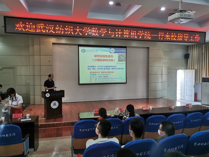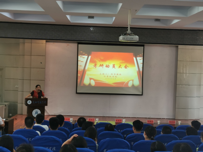 为使同学们对考研有更加深入的了解,动员更多的学生考研深造,增强学生考研信心,提升考研竞争力。9月8日下午,计算机学院在博学楼B03召开毕业生考研动员大会及武汉纺织大学兼职硕导授聘仪式,武汉纺织大学数学与计算机学院胡新荣等一行参加大会。院总支书记张青主持大会。