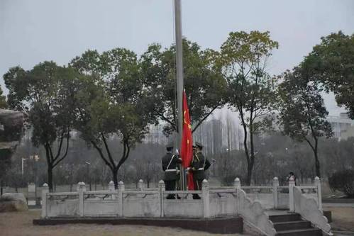 伴随着雄壮激昂的《义勇军进行曲》,五星红旗在国歌中冉冉升起,迎风飘扬。全体师生庄严肃立,行注目礼。