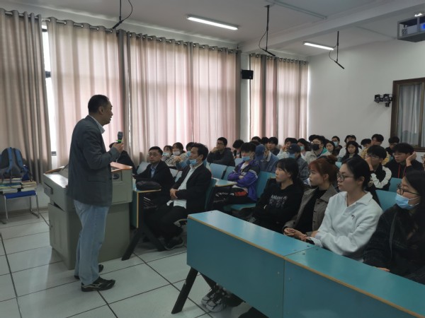 教室座无虚席,良好的秩序、精彩的讲解、丰富的互动让整个讲座会场气氛热烈,王老师对目前软件设计师的就业形势、就业类型及发展目标、以及一个优秀的软件设计师必备的项目开发能力等业务流程作了详尽介绍。介绍结束后,互动环节还就学生比较关注的问题,例如:“JAVA与C++”、“软件设计师架构”等问题作了解答。