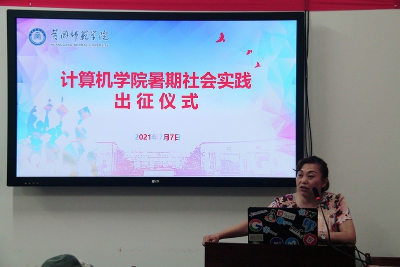 会上, 计算机学院党总支书记张青教授做动员讲话并提出四个大家熟稔于心的四个关键词,第一是安全,到乡村去,注意交通安全,要集体行动,不要单独行动。入夏之后注意食品安全服务点统一吃住,不要去江河湖泊游泳,时刻注意防疫安全。第二是纪律,一定要遵守打卡纪律工作纪律生活纪律,对自己严格要求。第三是珍惜,珍惜难得的社会实践活动,珍惜个人,集体,学校的荣誉,大家的一言一行关系着服务点乡村人民的看法。第四个关键词是提升,希望团队能在活动中得到锻炼,学会和人打交道,学会提升处理实际问题的能力,希望大家能在此次活动中留下宝贵的精神财富。