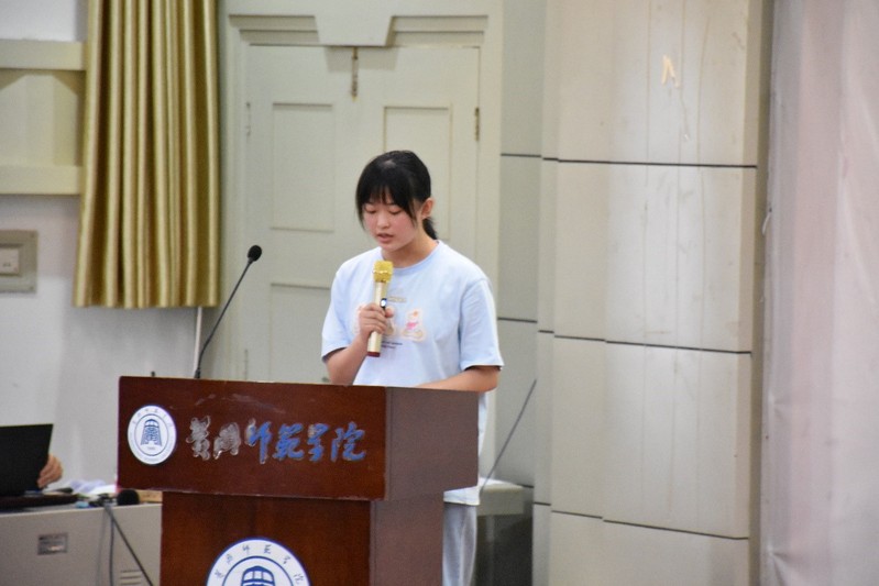 老生代表是软件工程1802班的沈思嘉同学,她结合了自身的大学经历,给在场的新生们送上了六个字“请一定要勇敢”,希望每一位同学能够勇敢的面对新环境,勇敢的去尝试,勇敢的去担当,在风华正茂的年纪书写青春的新篇章。