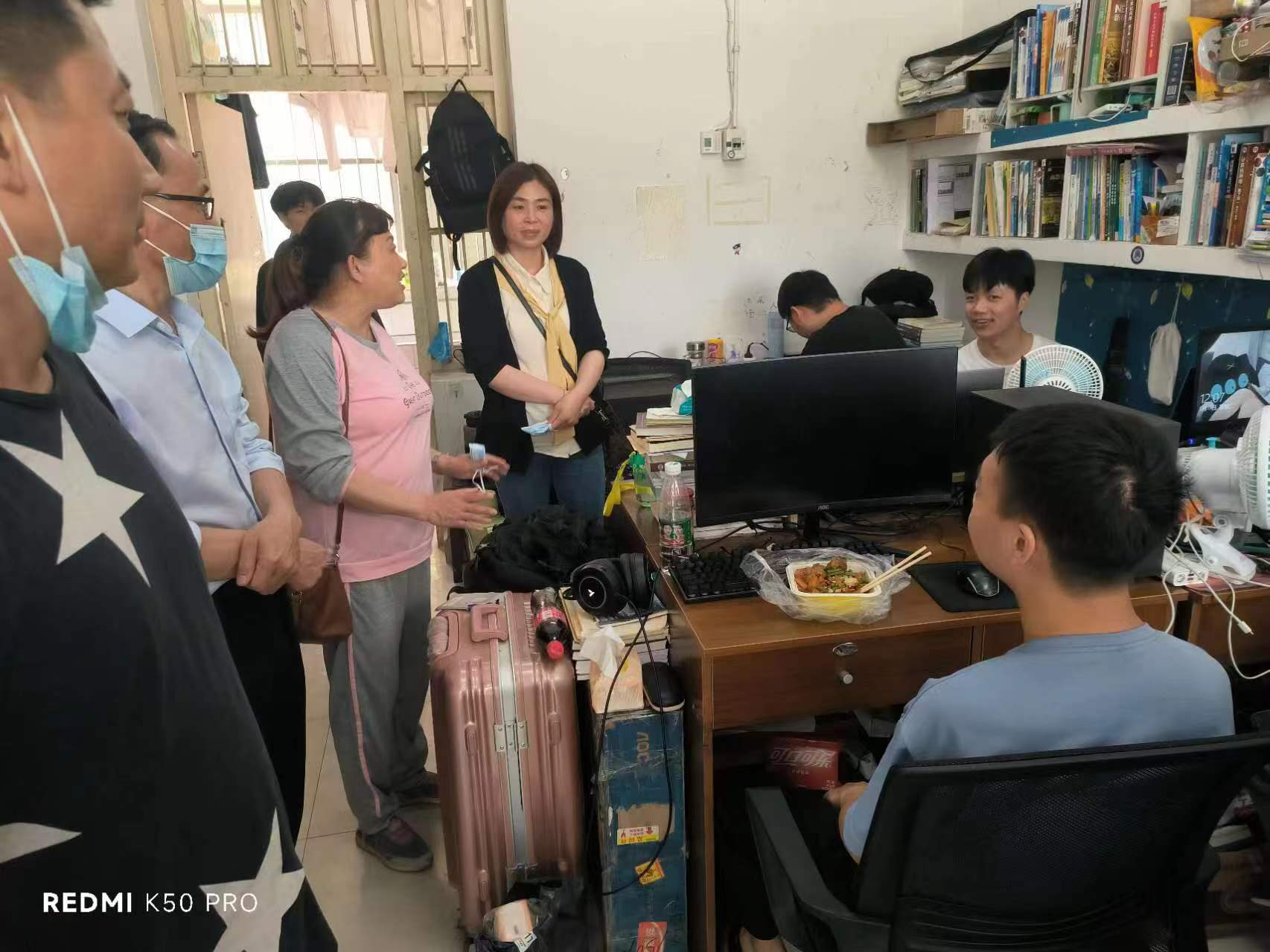 为筑牢疫情防控安全屏障,深入了解学生学习生活和思想动态,关怀学生的心理健康状况,5月17日中午12:00,计算机学院党总支书记张青、院长何中林、院党总支副书记胡永红、副院长姜国松及各年级辅导员一行深入学生宿舍,走访看望学生,为同学们送去关怀和温暖。