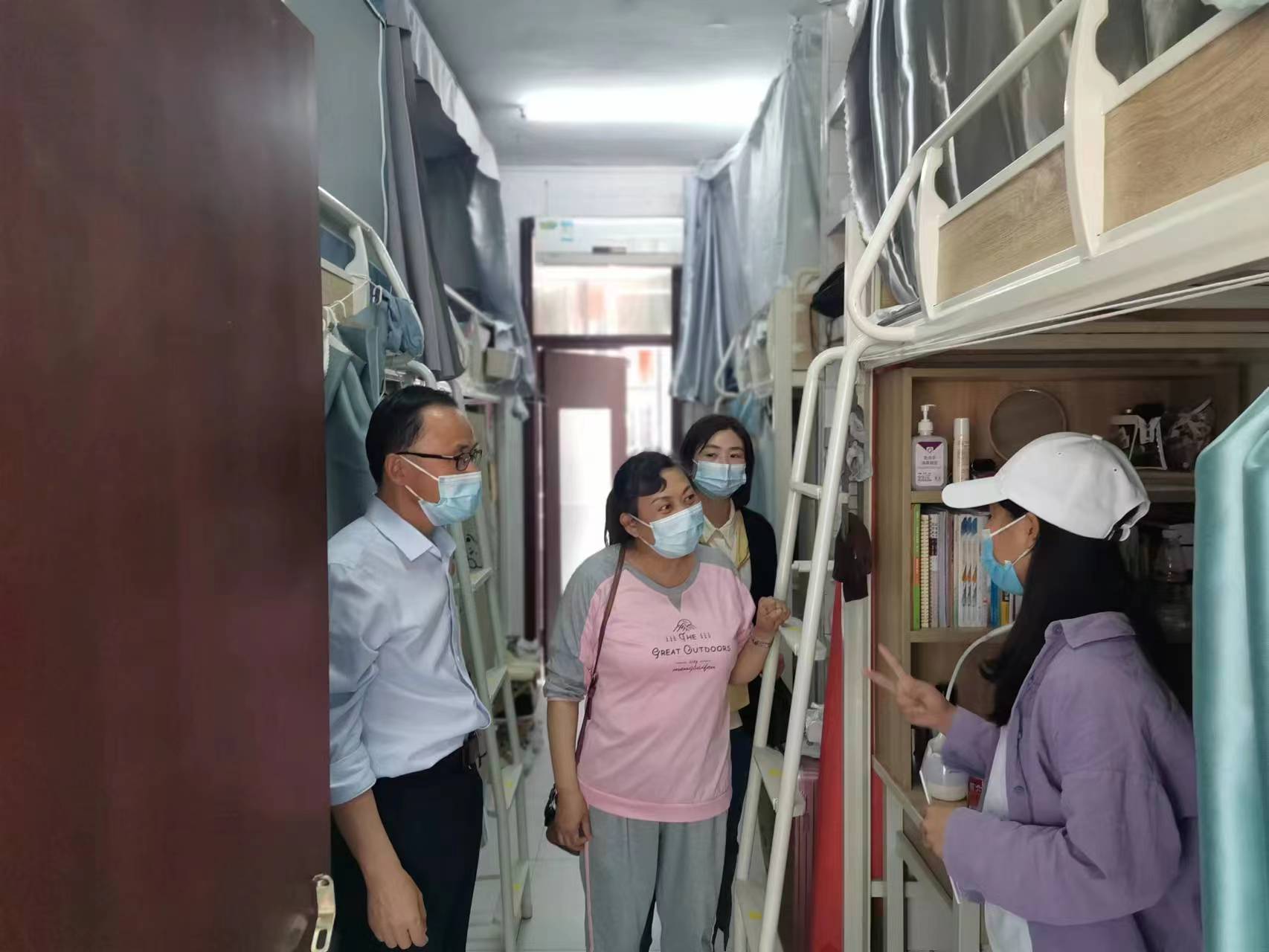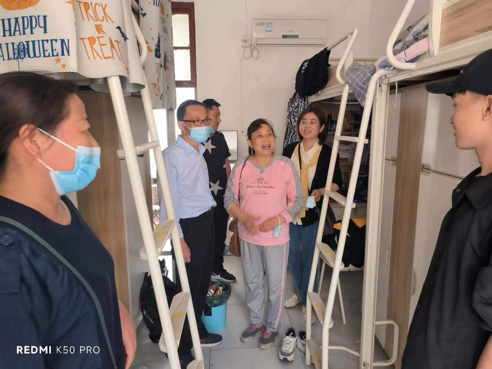 在走访过程中,学院领导一行与同学们进行亲切交谈,详细了解学生的日常学习和生活情况。院领导就宿舍安全对同学们提出了要求,夏季气候干燥,牢记用电安全,不能使用违规电器,离开宿舍要断电,同时要做好宿舍卫生工作,营造良好的生活环境,保持积极的心理状态;针对就业与考研问题与同学们进行了深入讨论,支持并鼓励同学们要提前做好规划,认真学习,无论是就业还是考研,都要全力以赴;同时还询问了即将毕业同学们近期的生活状况以及毕业感想,要求大家外出面试时要遵守学校政策以及防疫规定、积极规划好人生方向,为即将开始的新生活打好基础,同时也为四年大学生活画上一个完美的句号,并表示希望同学们今后常回母校看看。
