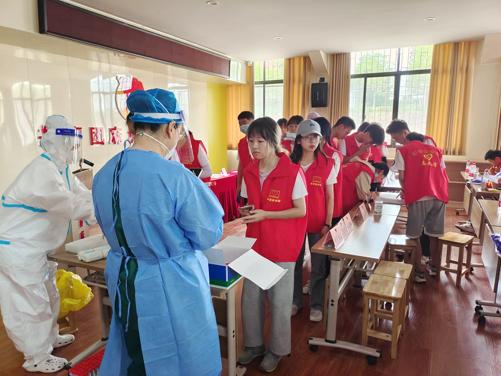 启动仪式前,工作人员向乡镇团委、村、我院志愿服务小组发放《工作手册》、希望家园的logo,以及全员进行落地核酸采集。