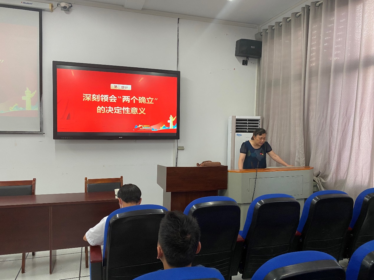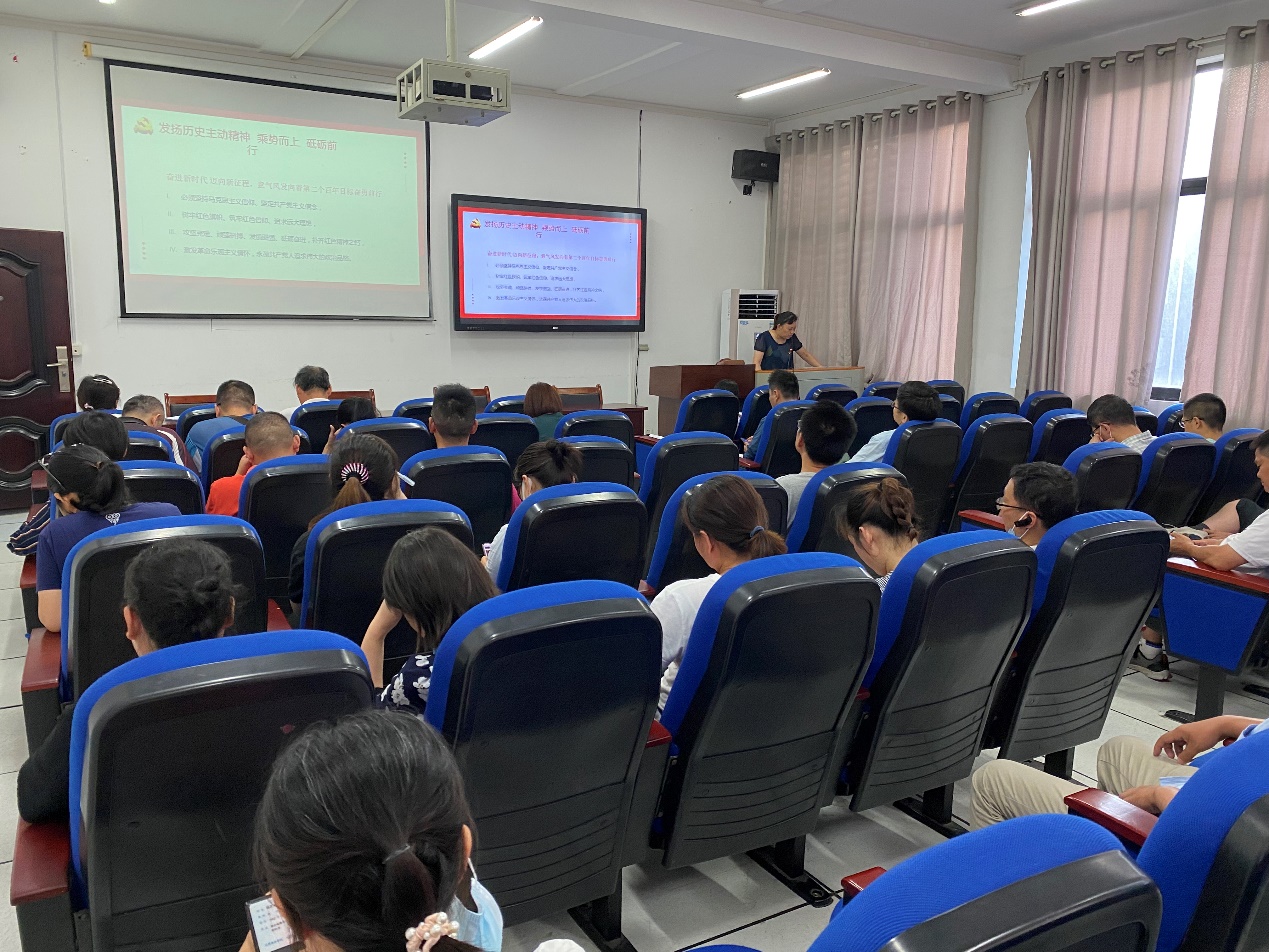 张青书记以党的十九届六中全会的重要会议精神为切入点,从发扬历史主动精神,趁势而上,砥砺前行到深刻领会“两个确立”的决定性意义,到以实际行动迎接党的二十大胜利召开三个部分展开,通过生动的历史事件和时期理论为大家详细讲解了“两个确立”的理论、历史及其决定性意义,结合我院发展的现状,带领大家明确了今后努力方向。她强调,一方面,全体教师要学好政治理论,深刻领会“两个确立”对新时代党和国家事业发展、对推进中华民族伟大复兴历史进程的决定性意义,进一步增强做到“两个维护”的政治自觉、思想自觉和行动自觉;另一方面,在学院发展新阶段,全体教师要全力以赴做好本职工作,明确学院和个人目标,以最佳状态、最好的精神面貌喜迎二十大到来。
