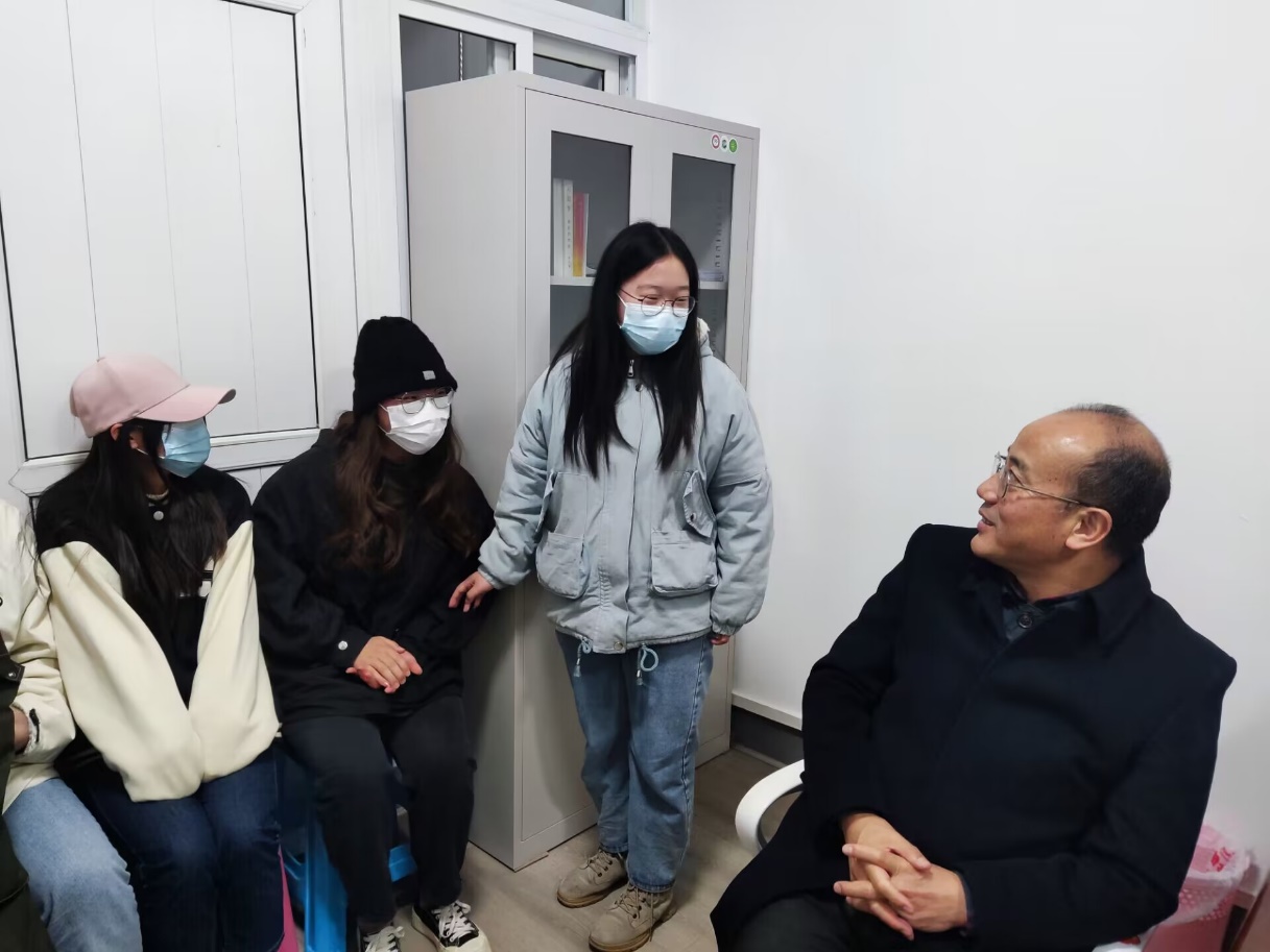 在学生宿舍里,夏庆利首先向同学们表示了学校领导和教师对学生们的关心关怀,随后以诙谐幽默的口吻与学生代表进行了亲切友好的交谈与互动,氛围十分融洽。同时就我院学生关于学习、生活方面的诉求进行深入交流。并就最近气温骤降的天气变化,及时了解学生御寒情况,督促学院务必做好学生防寒保暖工作。