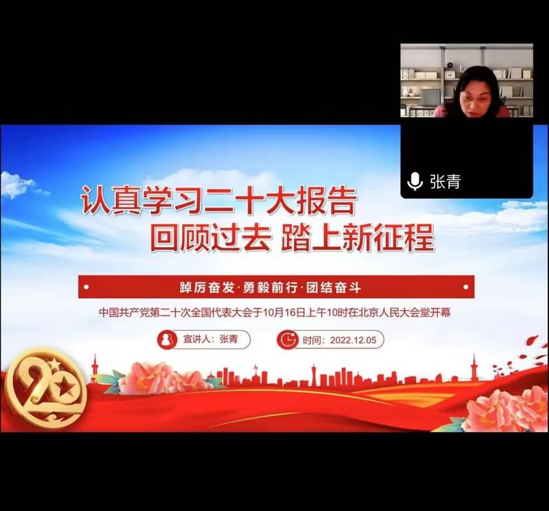 12月6日下午三点,计算机学院党委书记张青老师以“认真学习二十大报告 回顾过去 踏上新征程”为题,为全院教师党员讲二十大专题党课。