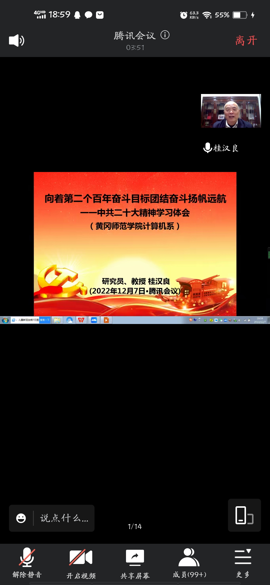 为深入学习贯彻党的二十大精神,加强全院师生政治理论学习,提高思想政治素养,12月7日晚上7点,计算机学院举办了学习贯彻党的二十大精神线上讲座,邀请中央社会主义学院特约研究员;中组部、教育部全国教育培训中心客座教授、高级培训师;省社科院研究员、硕士生导师;湖北省委、武汉市委宣讲团专家;williamhill英国特聘教授桂汉良作专题辅导报告。学院党政领导班子、师生代表共计200人参加了学习。讲座由计算机学院党委书记张青教授主持。