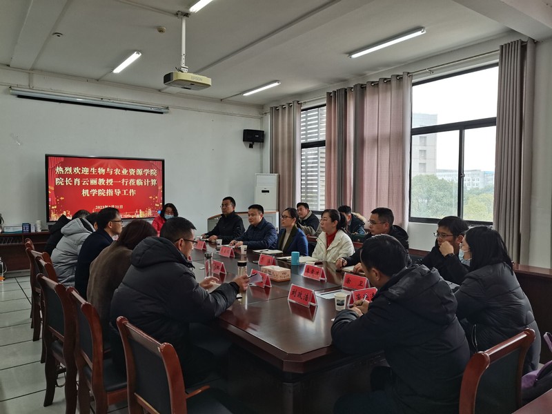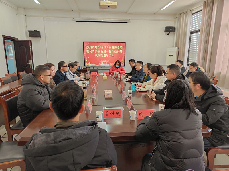 2023年2月21日上午,生物与农业资源学院肖云丽院长带领于晶副书记,占剑锋、朱华国副院长,李竟才、涂卫、胡婷、王蔚新、刘畅、程宝俊、胡爱升、董洪进等一行12位领导和相关负责人,来到计算机学院进行工作交流座谈会。会议由计算机学院何中林院长主持,胡永红副书记、刘华副院长,汤恒耀、肖飞等相关负责人参加了座谈交流。