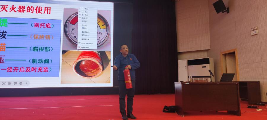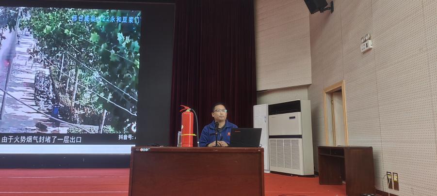 培训会上,董教官以“关注消防 生命至上”为主题,以“预防为主,防消结合”为宗旨,从防火灭火、日常生活中的火灾隐患、自救逃生、使用灭火器的方法等四个方面强调提高安全防范意识的重要性和加强学习消防知识的必要性。