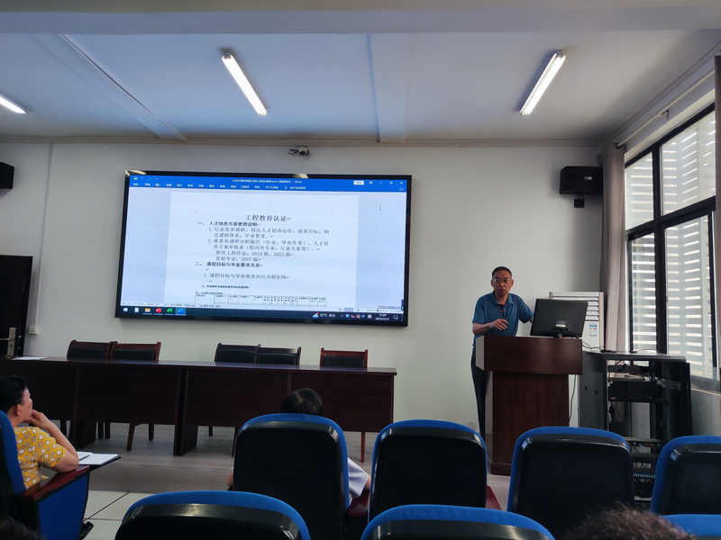通过此次培训让全体教师对工程教育认证的核心理念有了更进一步认识,同时对我院期末考试相关资料的规范、完整也奠定了基础。为了更好的推进工程教育认证工作,结合2023年上半年期末工作,计算机学院于2023年5月31日下午在逸夫楼305召开了全院教师大会。会上结合工程教育认证要求和期末资料要求,由副院长刘华、教研室主任周静、许元朋三位同志分别就课程目标、课程目标达成度计算、试卷审批表、试卷AB卷、课程达成度分析报告等期末资料应该如何做、如何写才能符合工程教育认证要求进行了详细的培训。