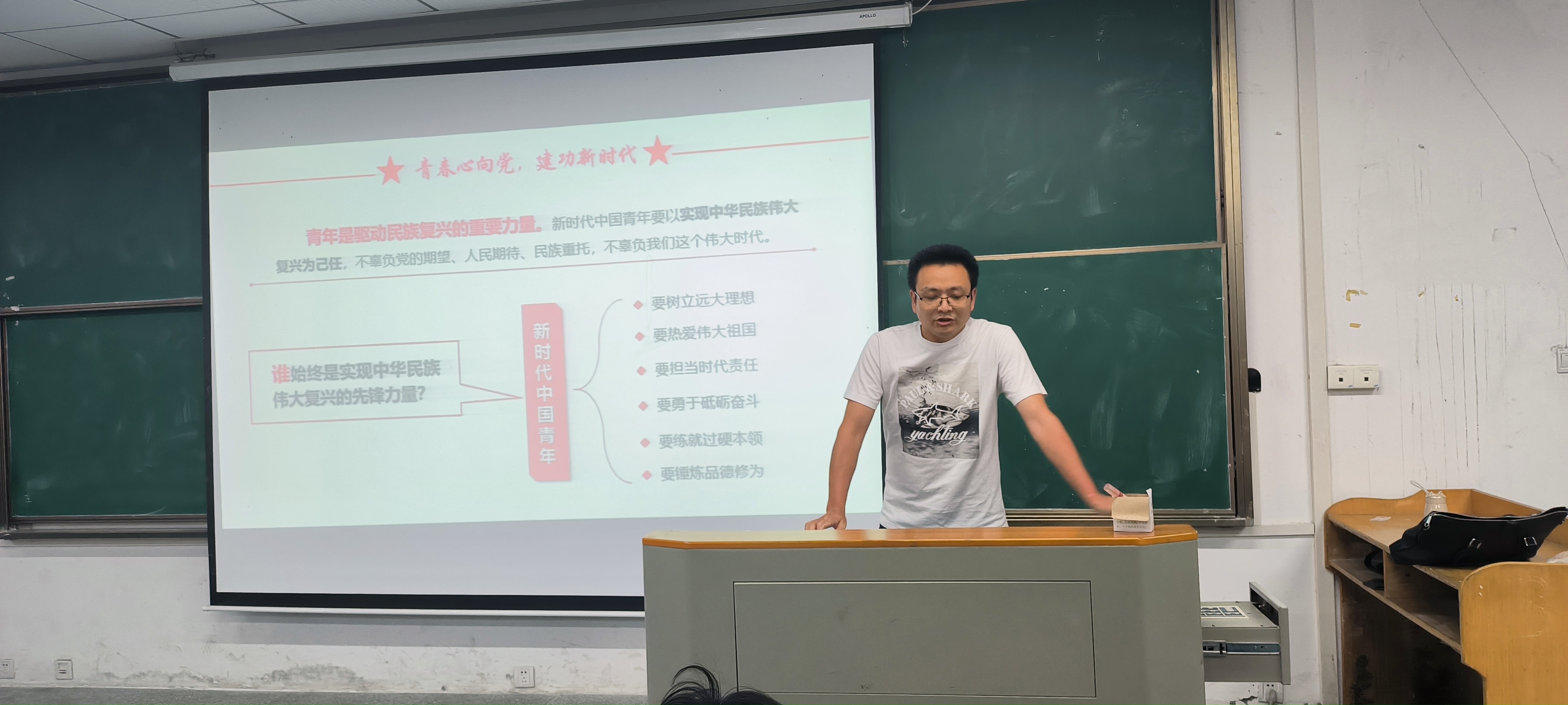除此之外,胡志锋老师还以“如何申请入党”“入党积极分子的确定和培养教育”“发展对象的确定和考察”“预备党员的接收”“预备党员的教育考察和转正”五个方面,着重讲述信仰是什么、树立正确入党动机的重要性、大学生加入中国共产党的重要意义,并详细讲解如何撰写入党申请书。
