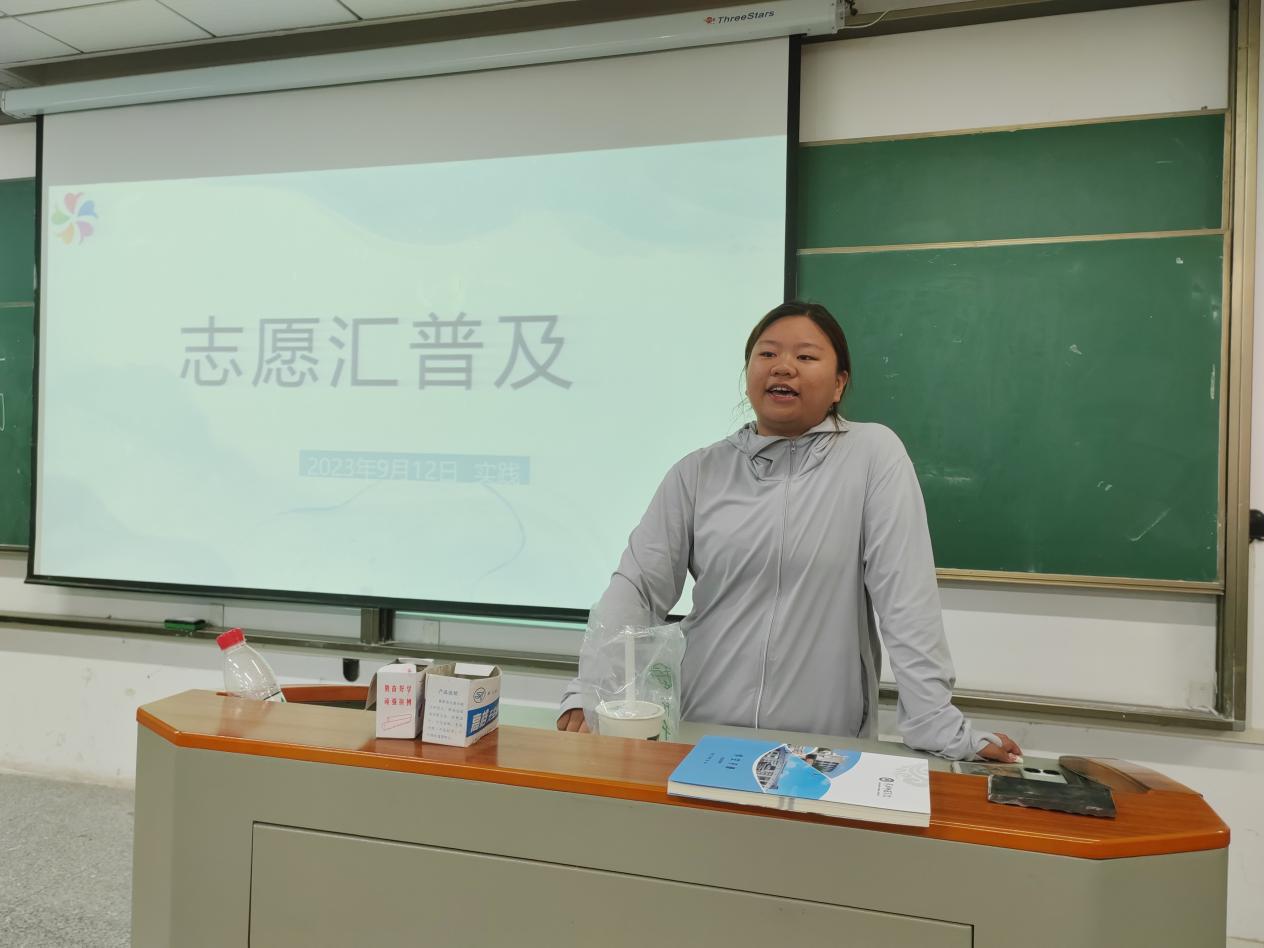 大会第二项,由院学生会实践部蔡璐为新生讲解志愿汇App的使用方法。蔡璐同学从志愿汇下载和注册、志愿汇的相关知识、志愿汇App的相关使用、志愿汇其他常见问题这四个方面向新生详细讲解了志愿汇App,帮助新生更好的了解与使用。