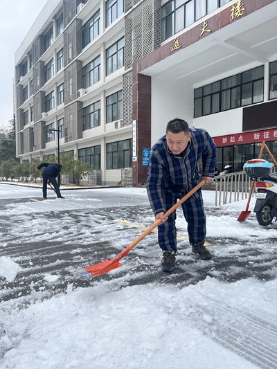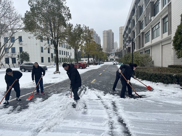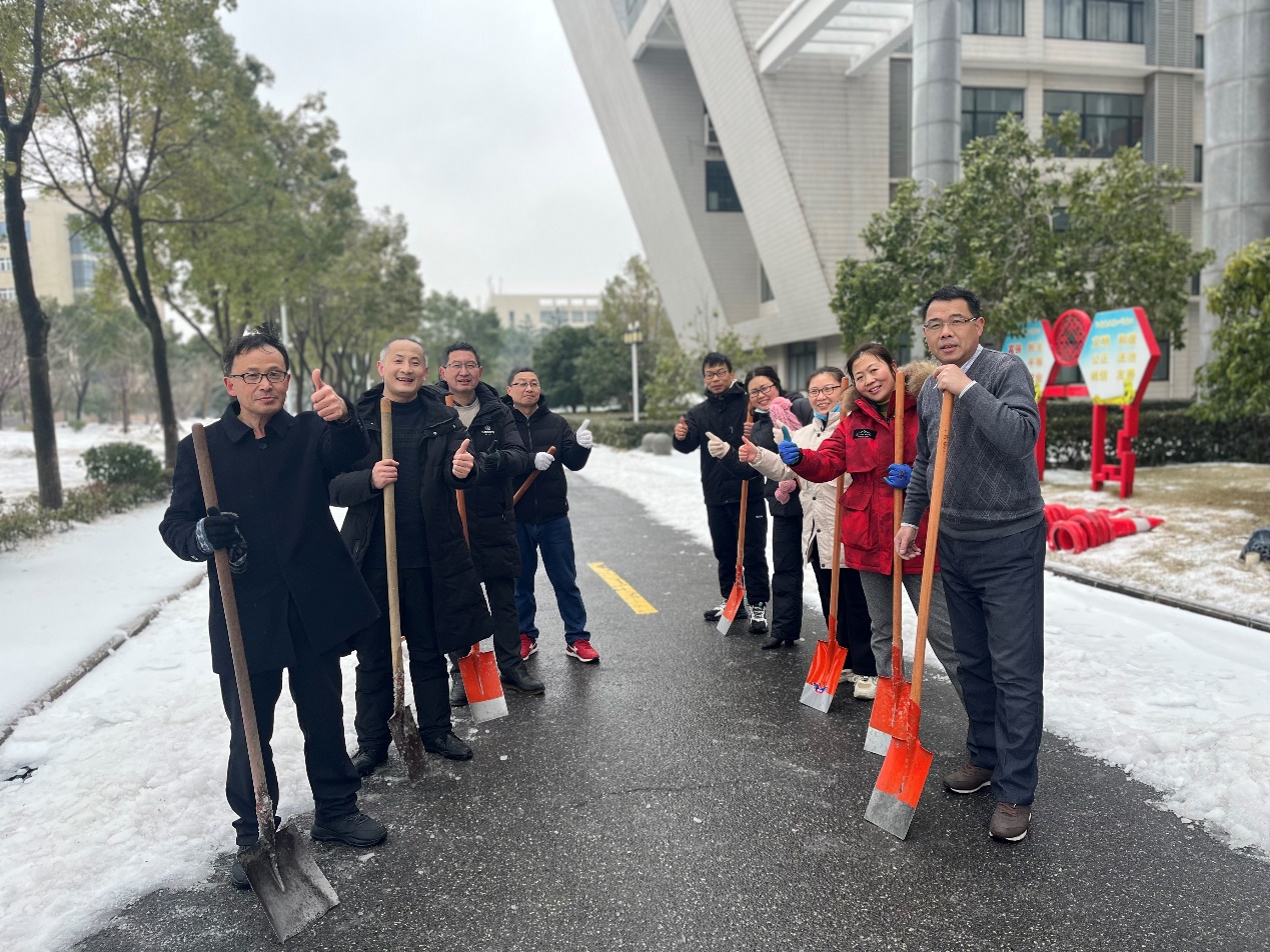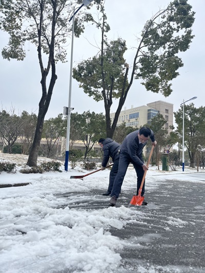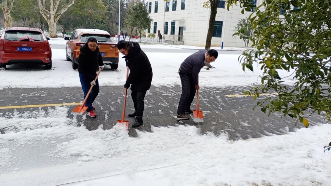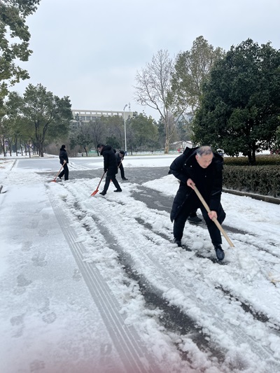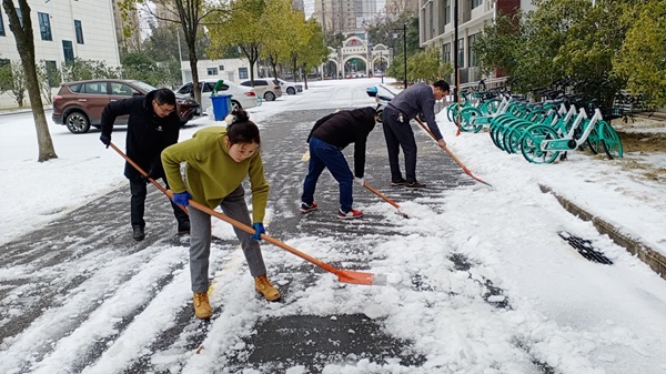 黄冈市今日连续降雪,面对大雪冰封的路面,为保障师生出行安全,2月22日,计算机学院积极响应校党委的号召,迅速组织学院党员干部志愿者清理校内道路,以切实行动为校园安全出行保驾护航。