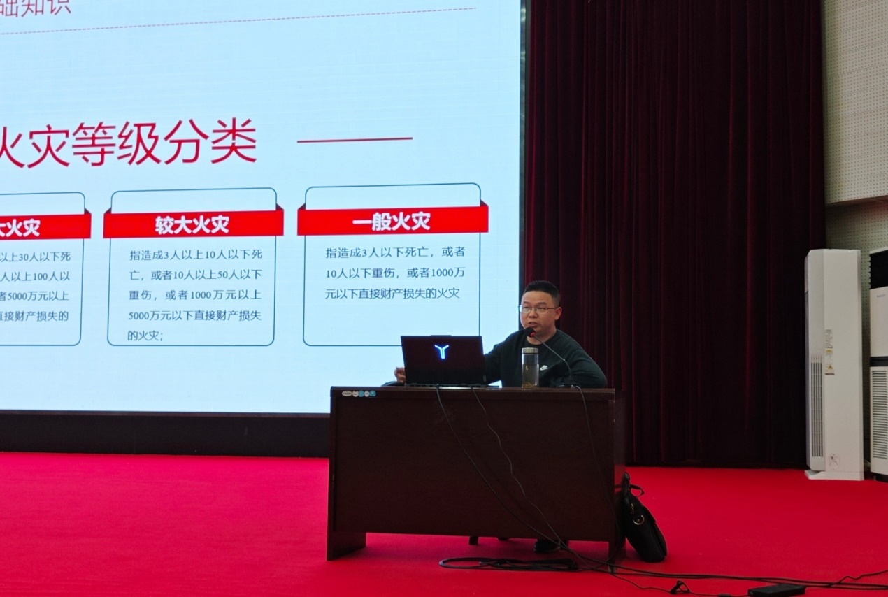 报告开始前,韦工程师通过视频让大家学习了近几年各高校火灾案例。随后,从消防安全基础知识,认识消防设施器材标志,四种基本灭火方法,遇到火灾的逃生方法四个方面为大家讲授了消防各方面的知识,并向大家展示了常见的消防器材以及使用方法,根据真实生活场景以及学校情况,告诉大家在遇到灾情时应该如何做。