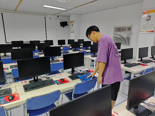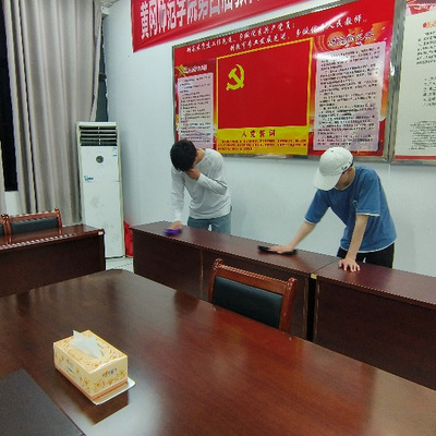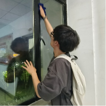 人多力量大,无论是实验室、会议室、办公室还是走廊,都有老师和同学们挥汗如雨的身影。他们有的细致地擦拭着桌椅和窗户、有的仔细地打扫着地面,氛围其乐融融,展现了师生共同劳动的美好画面。