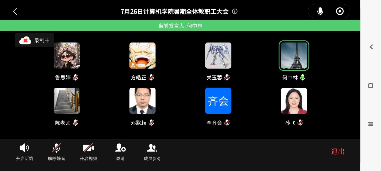 2024年7月26日,计算机学院通过线上腾讯会议召开暑期工作会议,全体教职工参加了会议。会议由学院院长何中林主持。