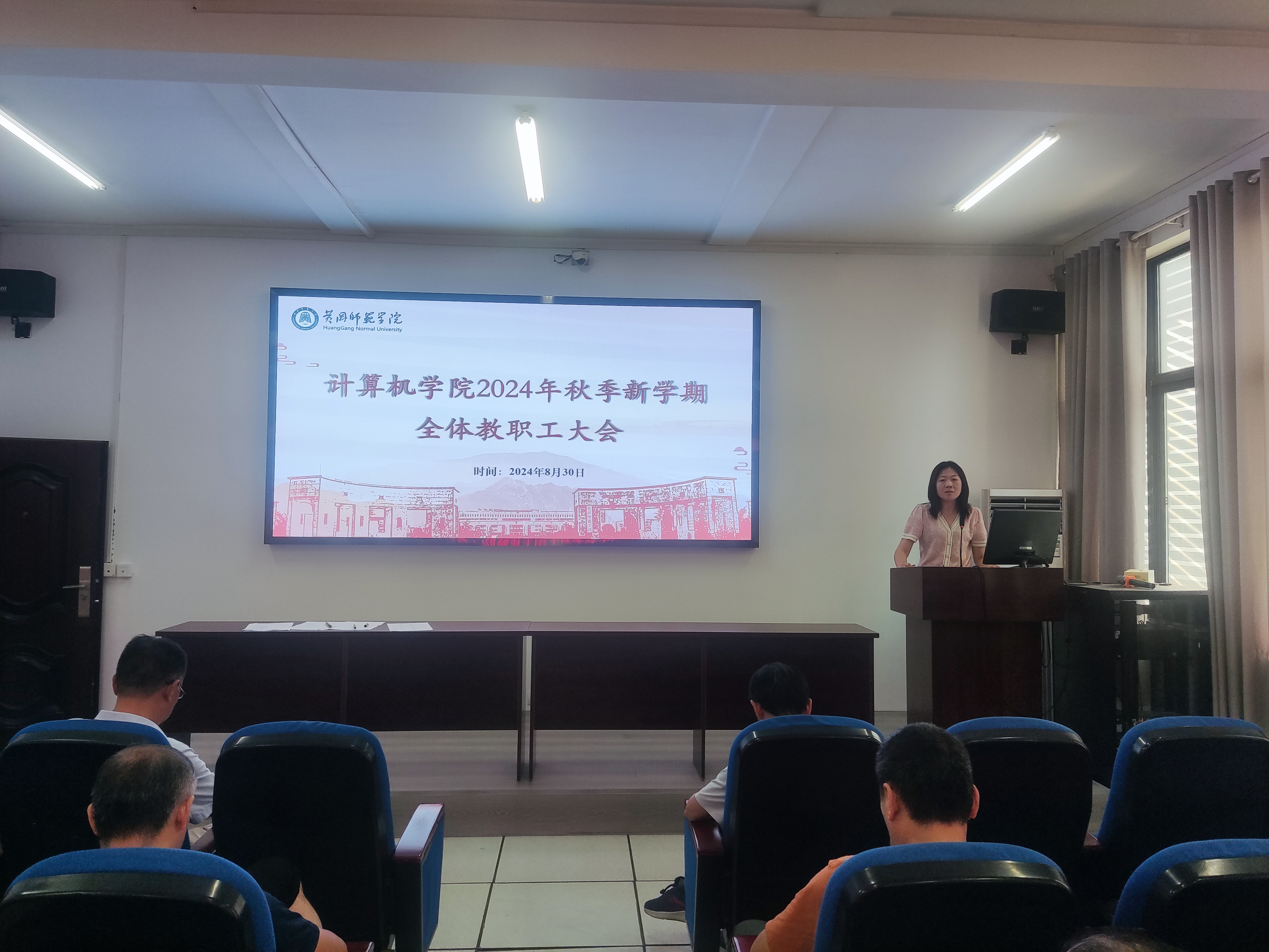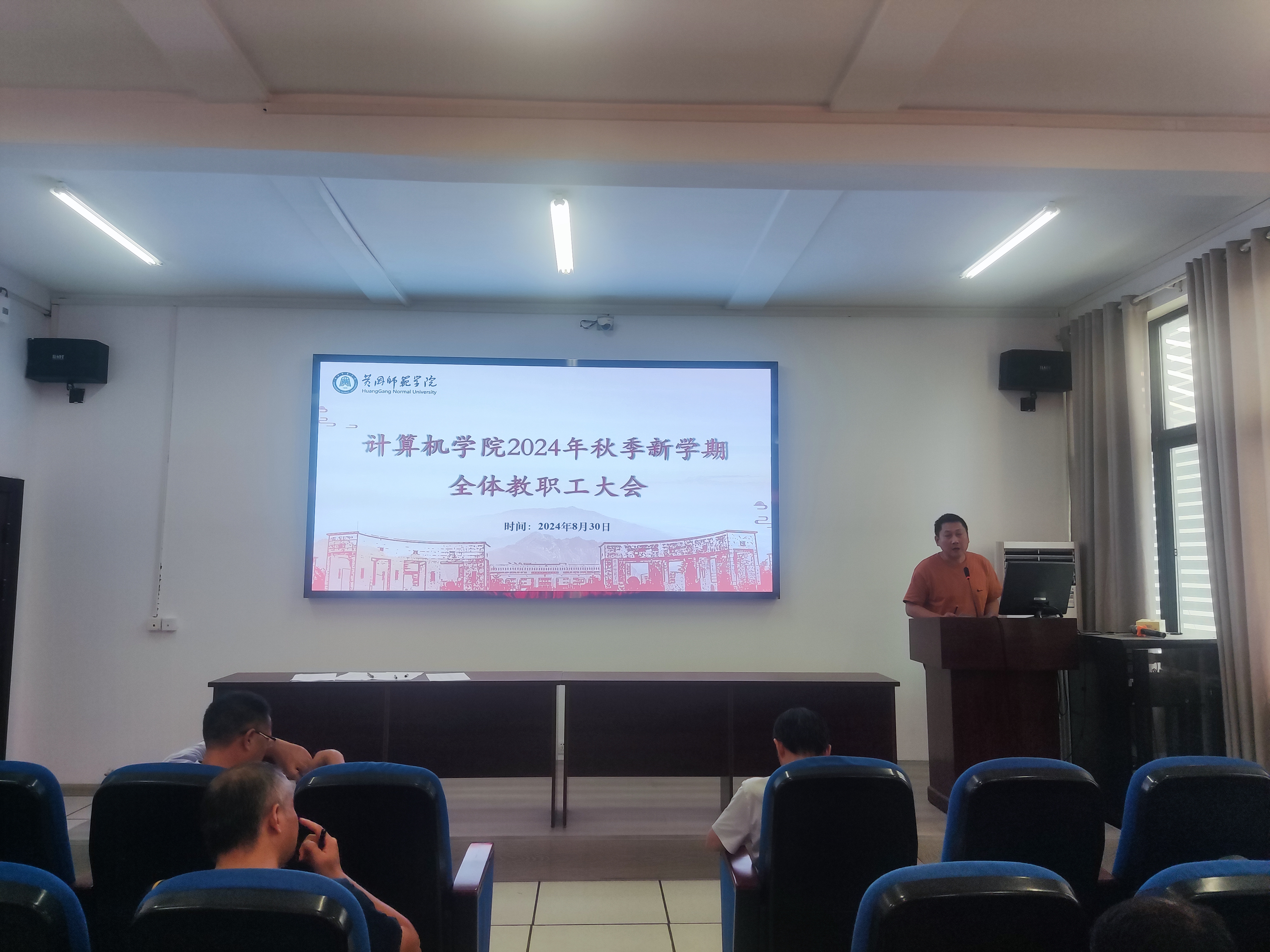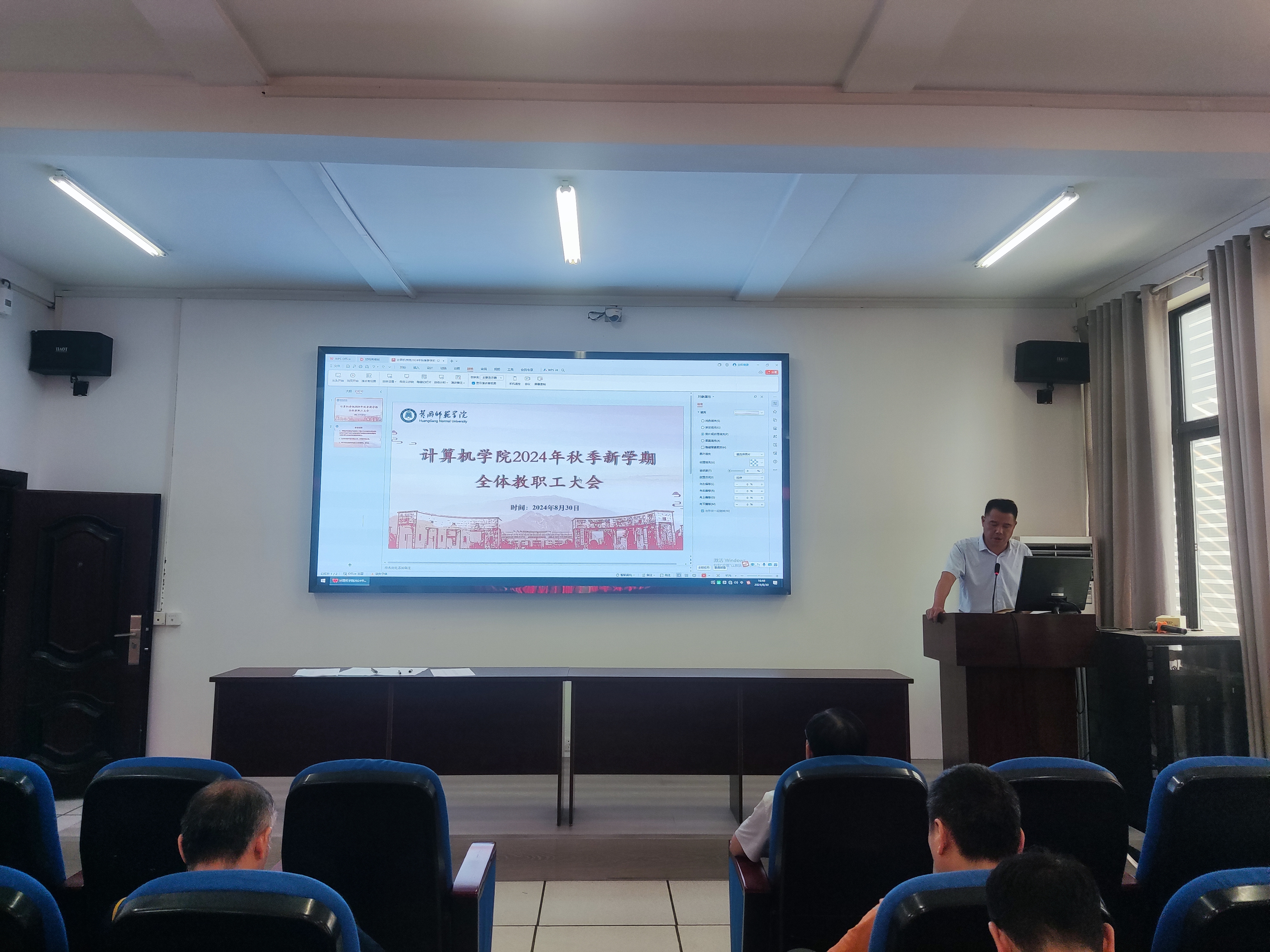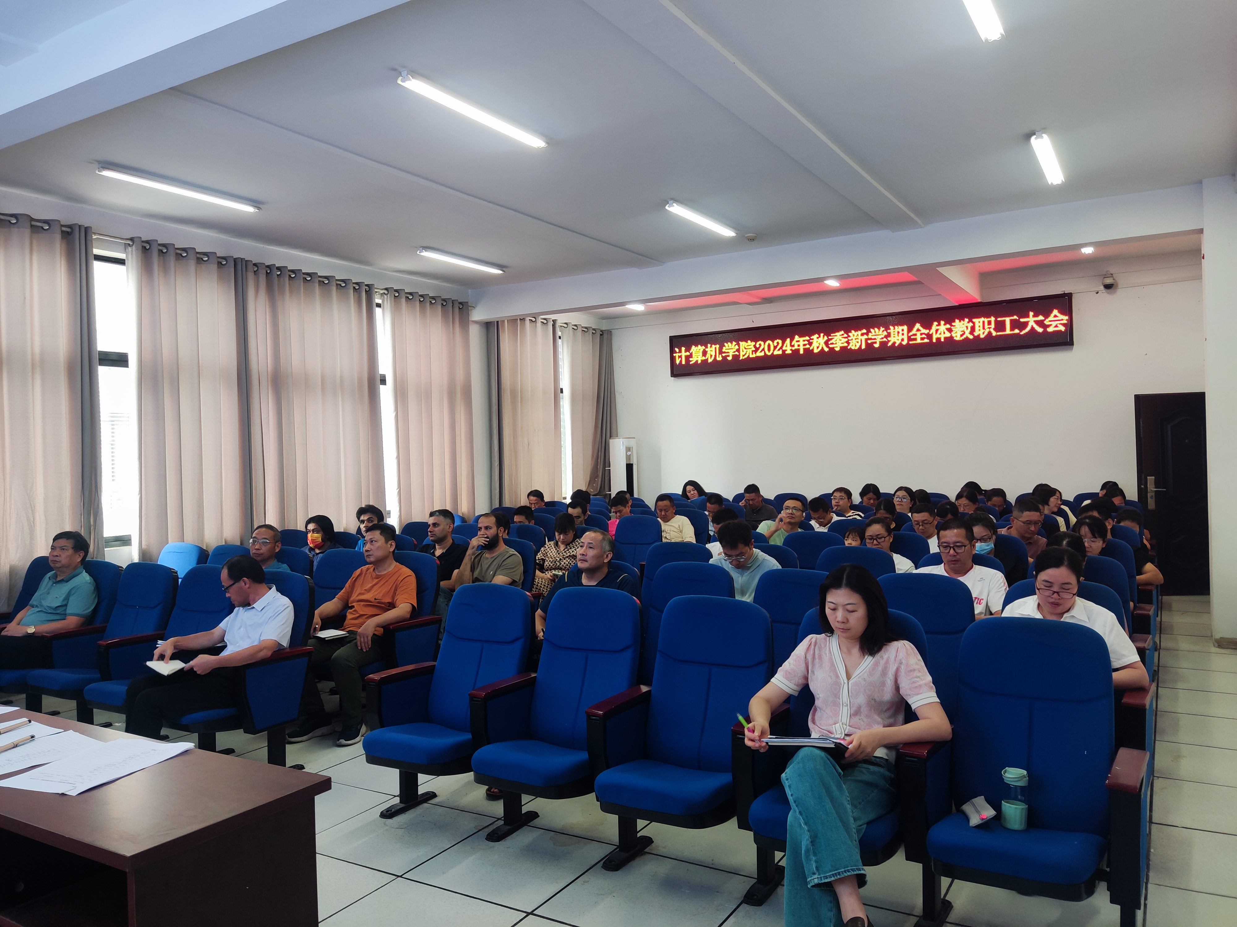 新学期,谋新局,开新篇。8月30日下午,计算机学院于逸夫楼308会议室召开秋季新学期全体教职工大会。会议由党委书记邓默耘主持,全体教职工参加。