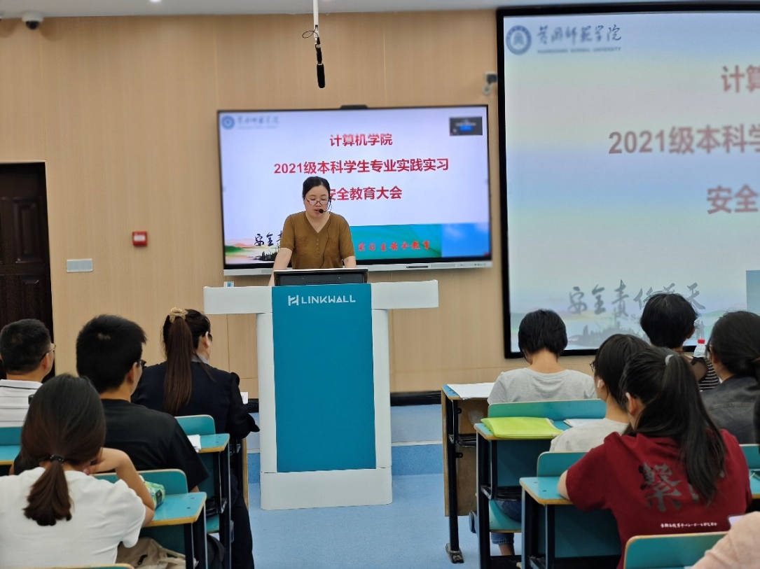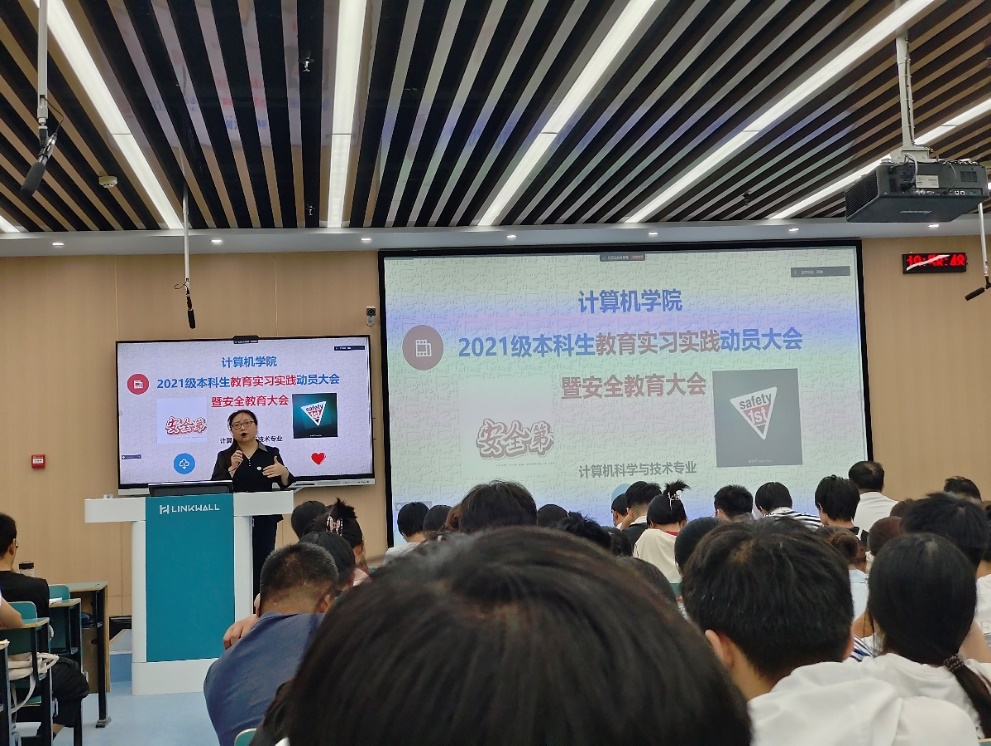 9月4日晚上7:00,计算机学院在逸夫楼C03教室召开了2021级本科学生实习动员大会,计算机学院2021级计算机科学与技术、软件工程、网络工程、人工智能、信息管理与信息系统本科生共279人参加了会议。计算机学院何中林院长、关玉蓉副院长、实习负责人周静老师、张瑞红老师,分管实习21级学生年级辅导员、班主任及实习指导老师参加了本次会议。大会由副院长关玉蓉老师主持。